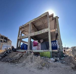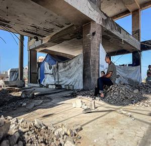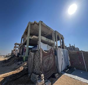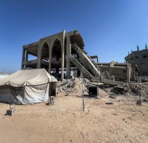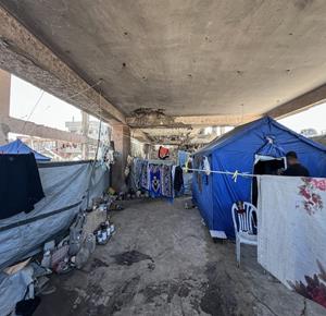 غزة - نازحون يقيمون داخل مساجد مهدّمة في شمال مخيم النصيرات وسط قطاع غزة، بعد أن تحولت إلى مأوى مؤقت للعائلات التي فقدت منازلها خلال الحرب