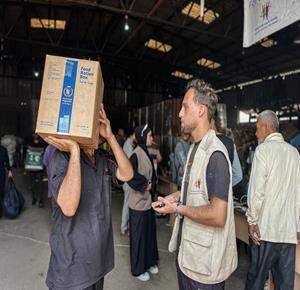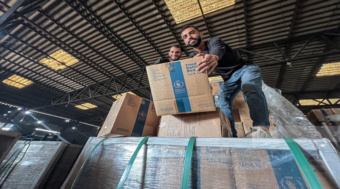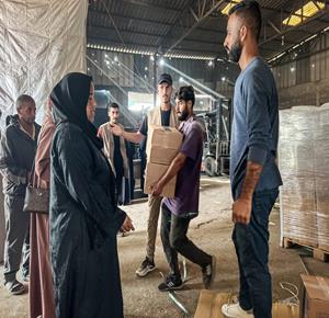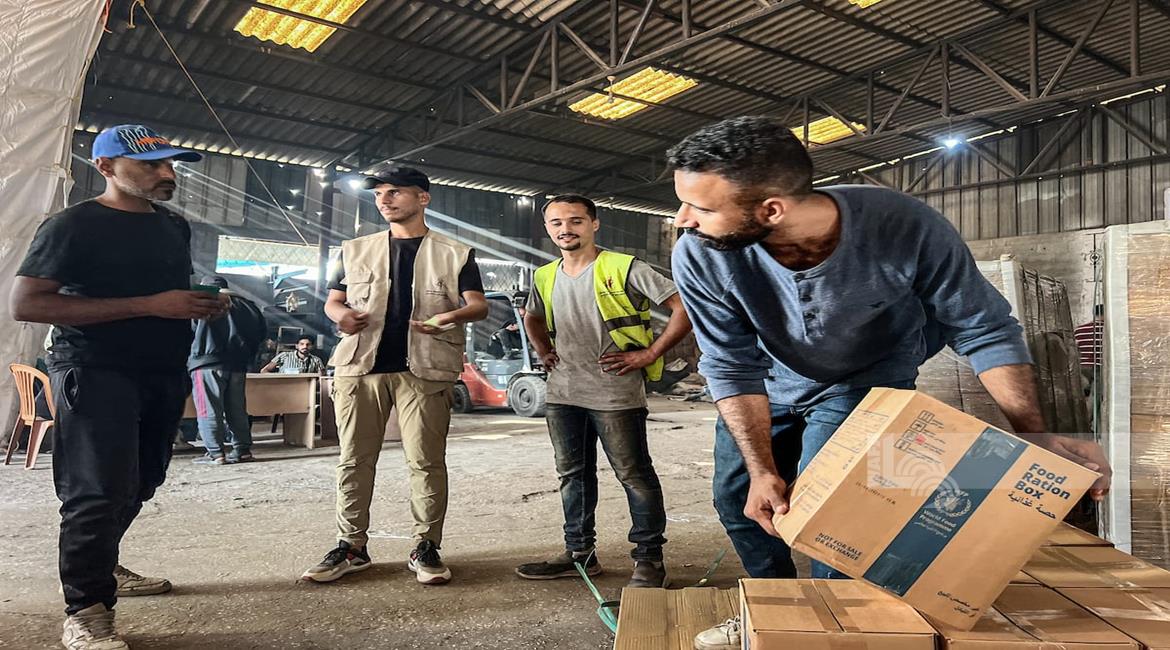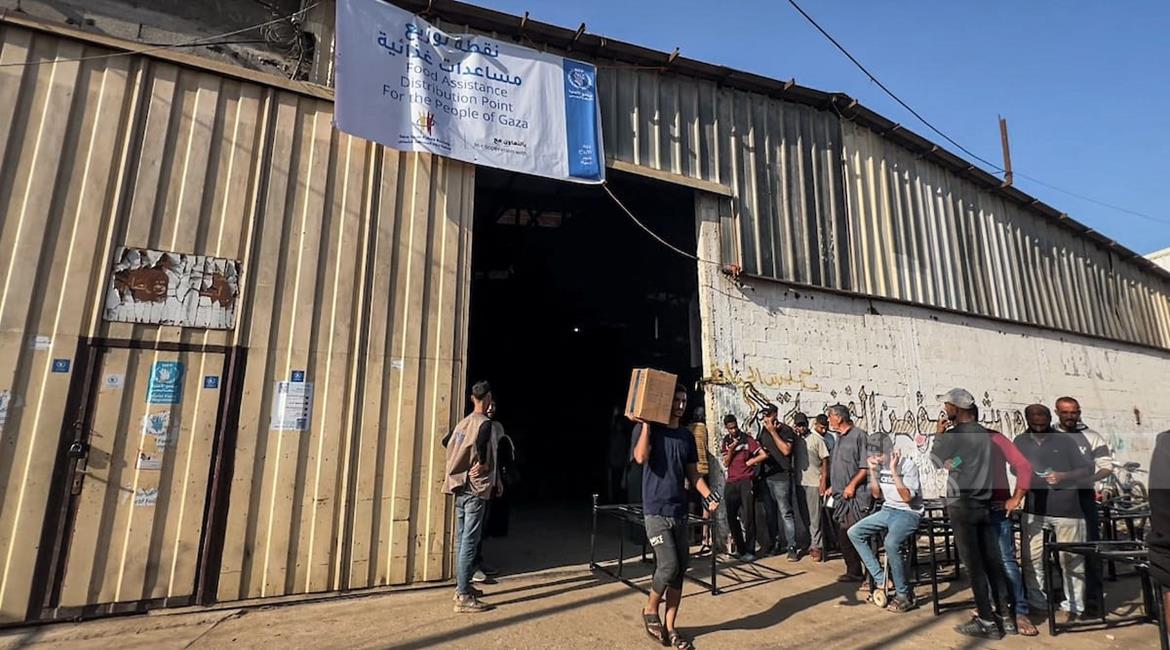 غزة - توزيع مساعدات غذائية في بلدة الزوايدة وسط قطاع غزة