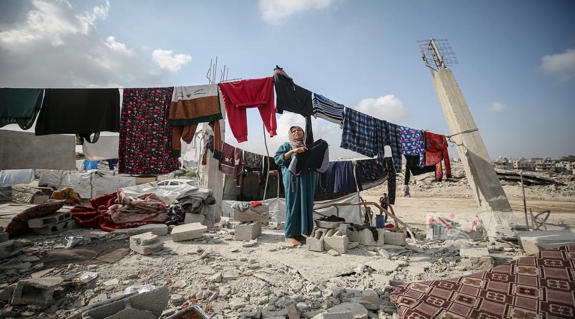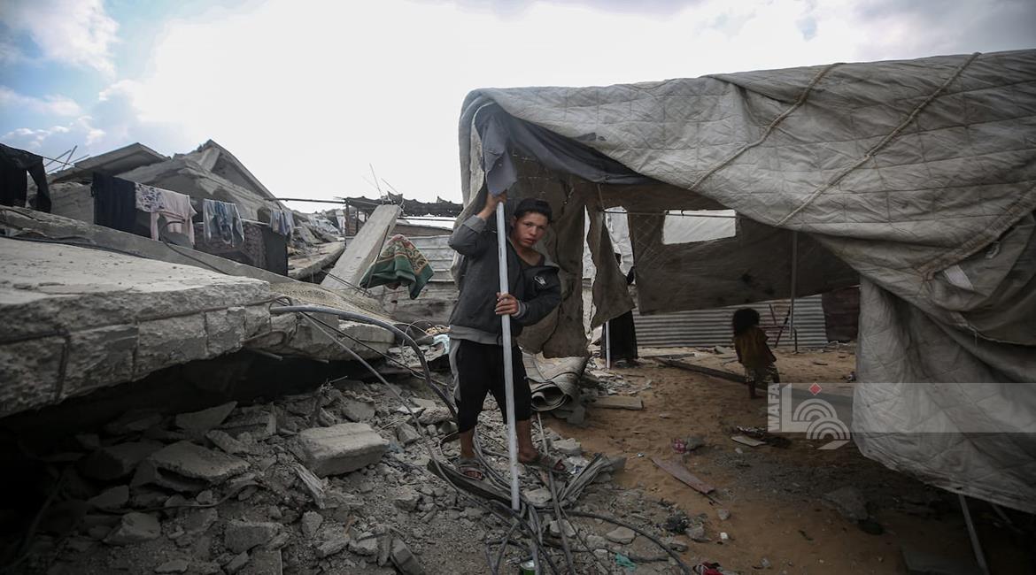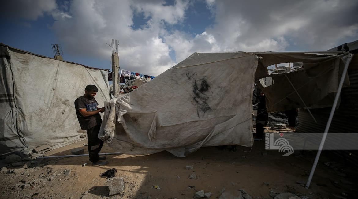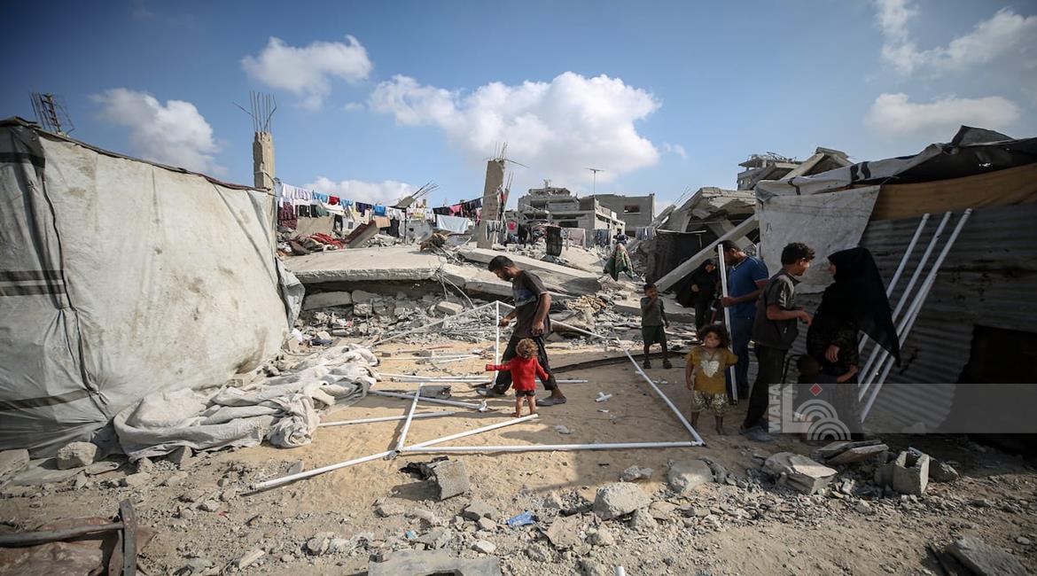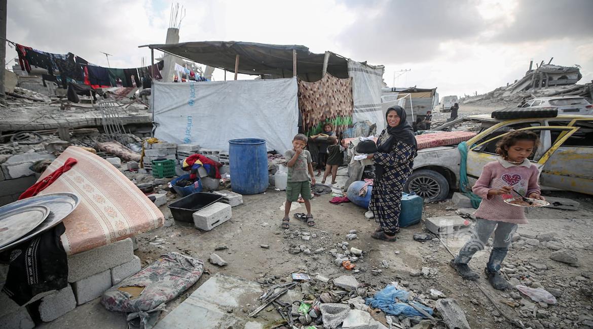 غزة - عائلة تقيم خيمة أمام منزلها المدمر بشكل كامل في غزة