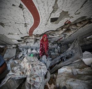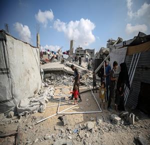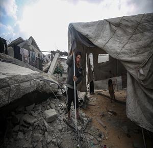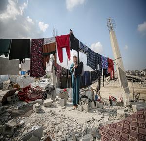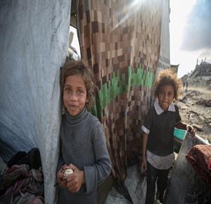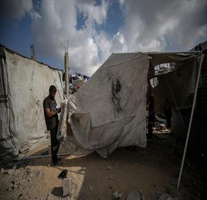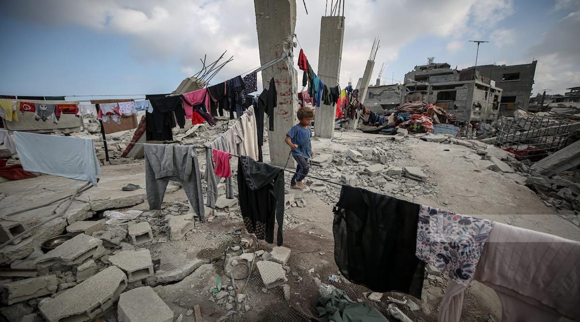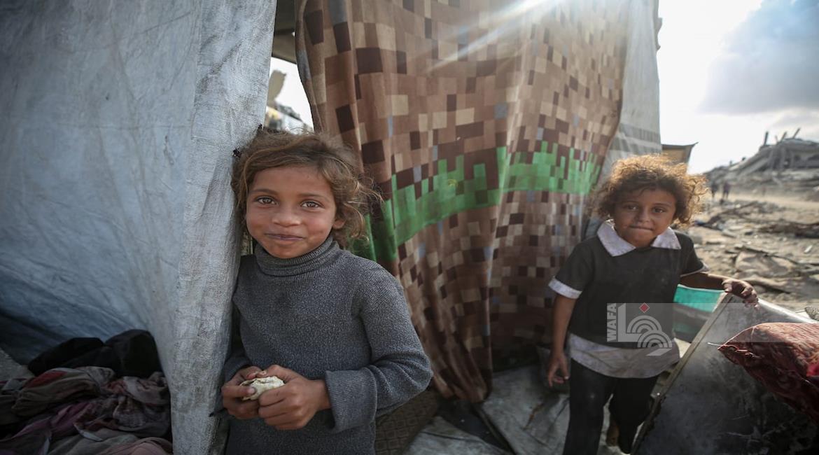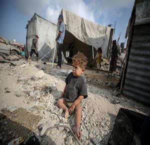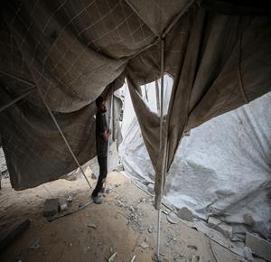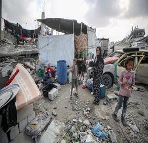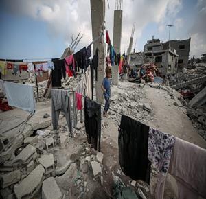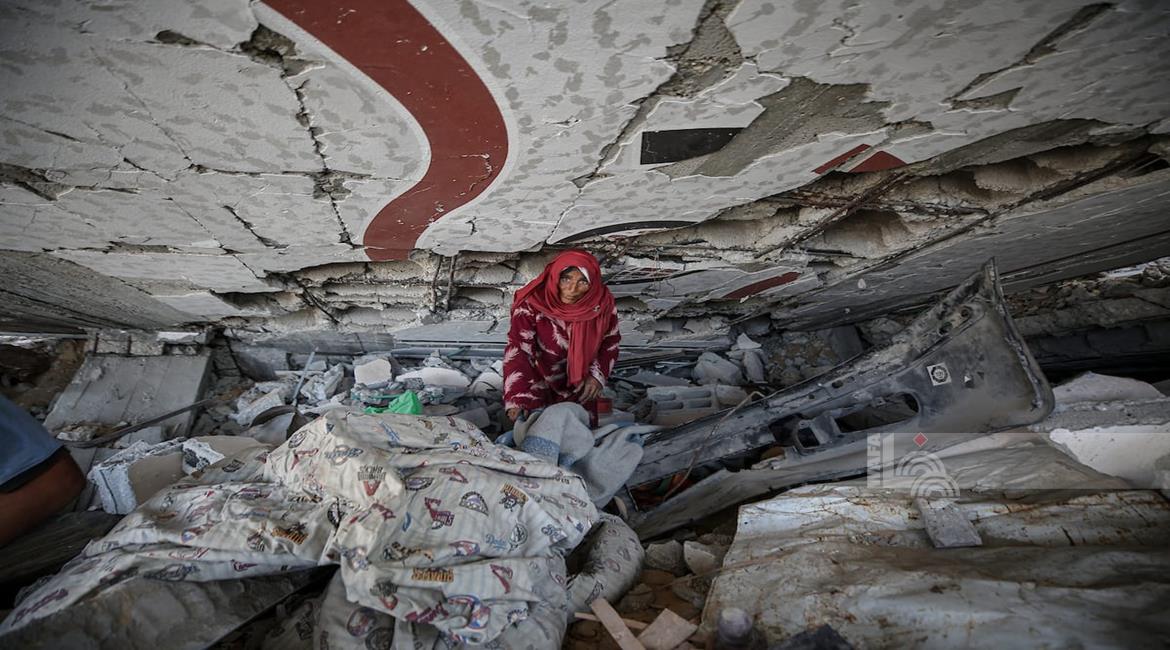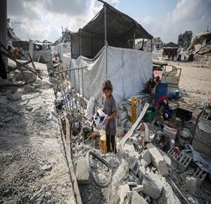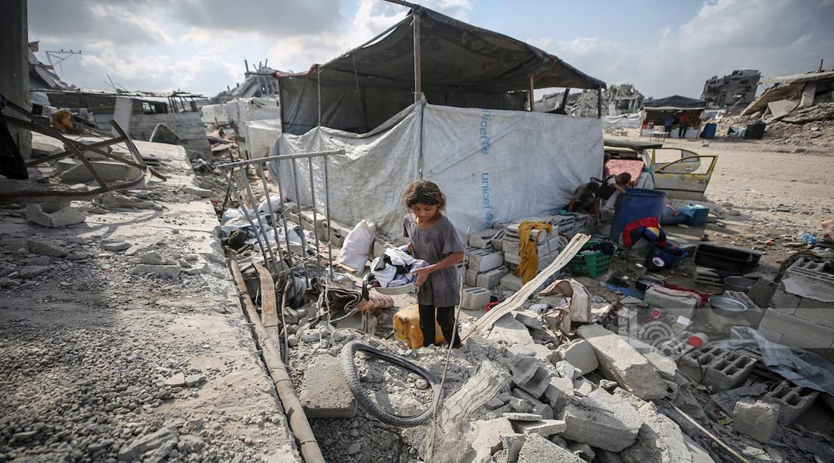 غزة - عائلة تقيم خيمة أمام منزلها المدمر بشكل كامل في غزة