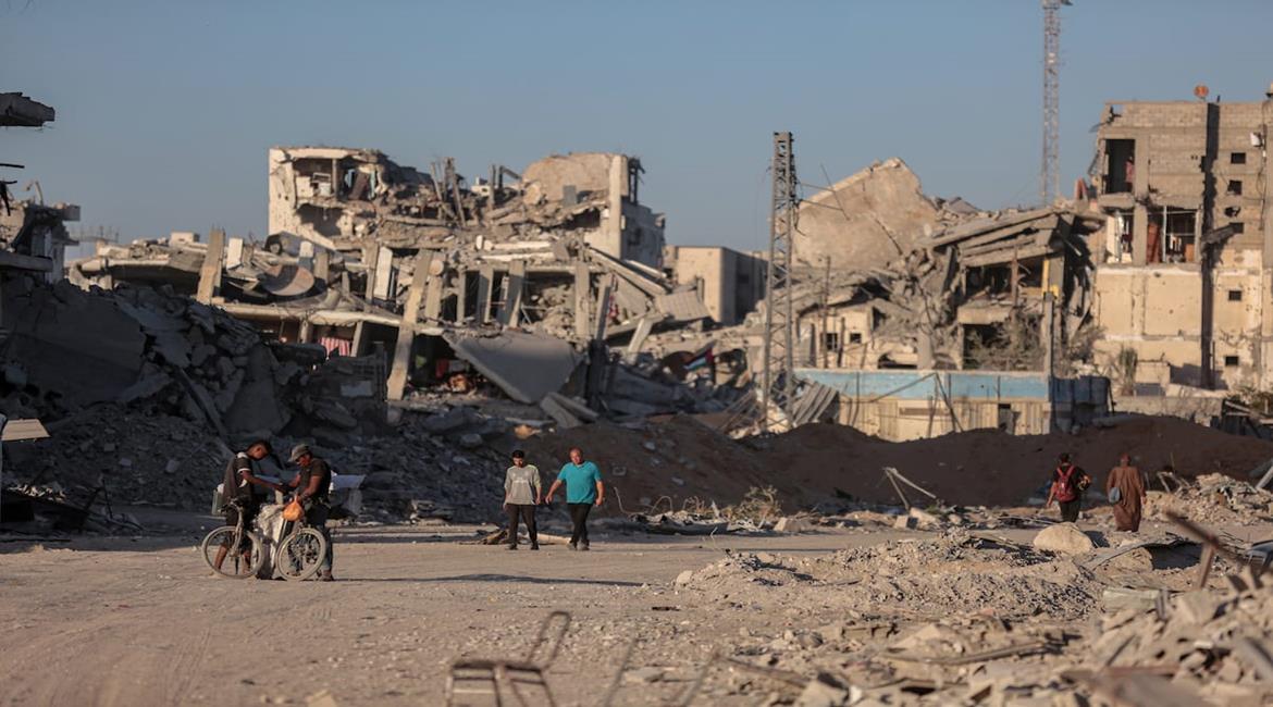مواطنون يتفقدون منازلهم وأحيائهم المدمرة في منطقة تل الهوا جنوب مدينة غزة