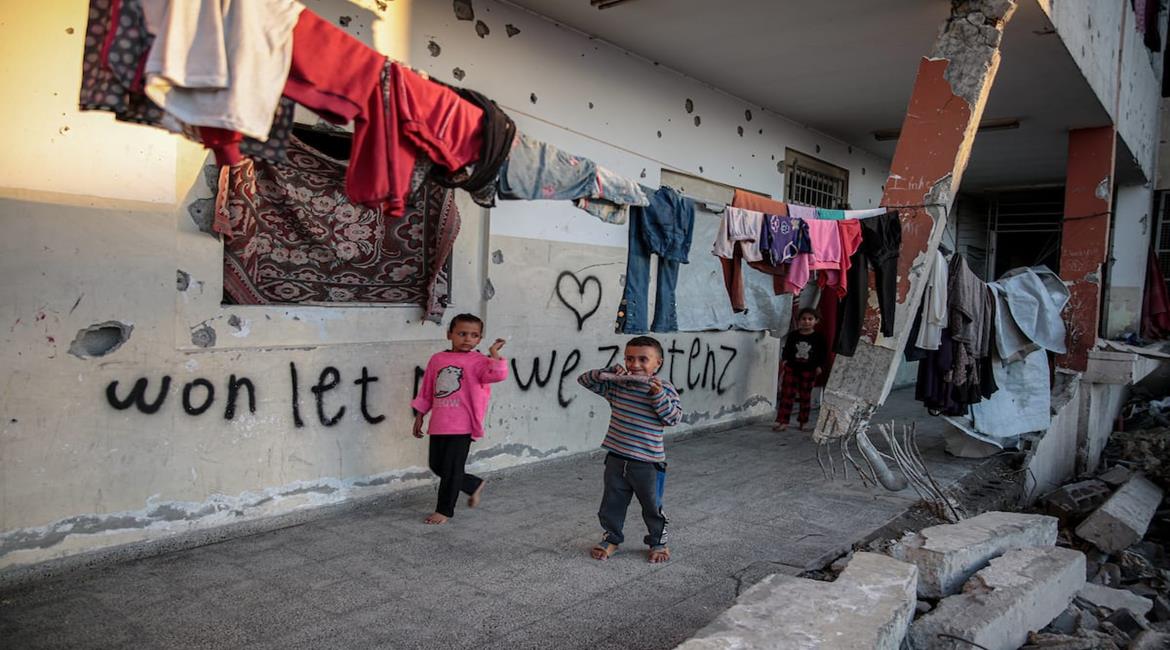 مواطنون يعيشون بين أنقاض مدرسة الجليل في حي تل الهوا جنوب مدينة غزة