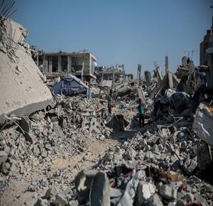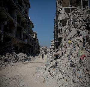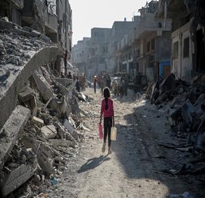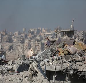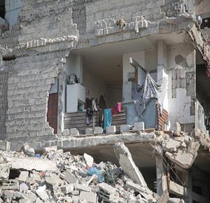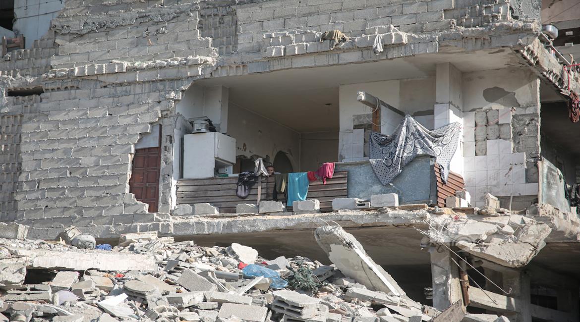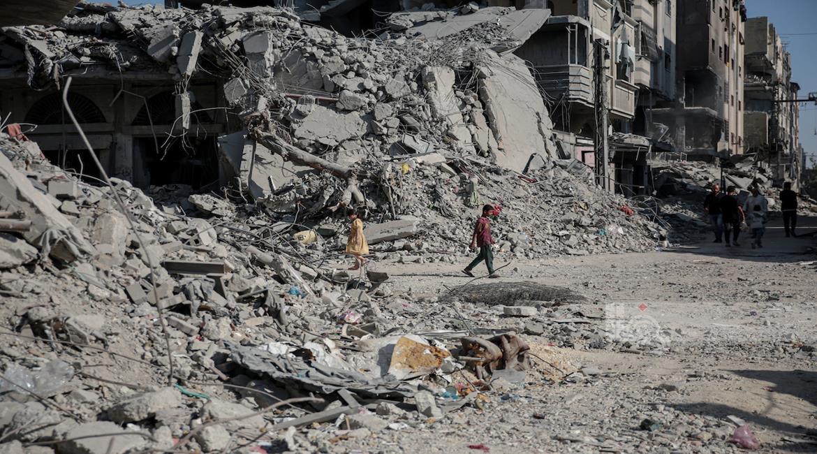 مواطنون يعيشون بين أنقاض مدرسة الجليل في حي تل الهوا جنوب مدينة غزة