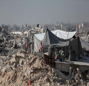 غزة - وسط ظروف مأساوية، مواطنون يحاولون التكيف مع الحياة على أنقاض منازلهم التي دمرها الاحتلال الإسرائيلي في جباليا شمال قطاع غزة