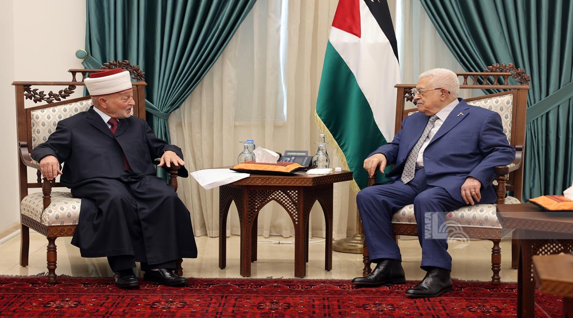 رام الله - الرئيس محمود عباس، يستقبل مفتي القدس والديار الفلسطينية الشيخ محمد حسين