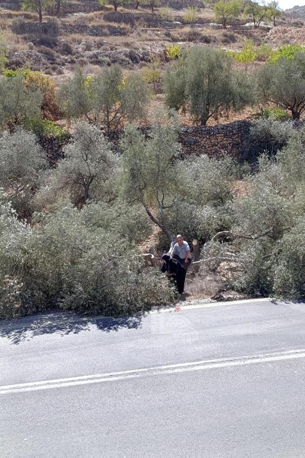 الخليل - مستوطنون يقطعون 80 شجرة زيتون في واد سعير شمال شرق الخليل