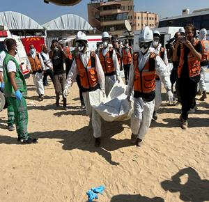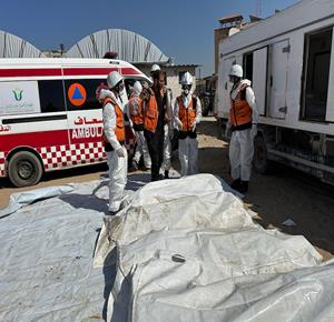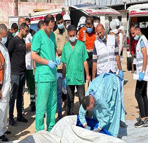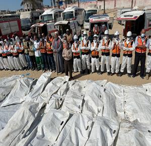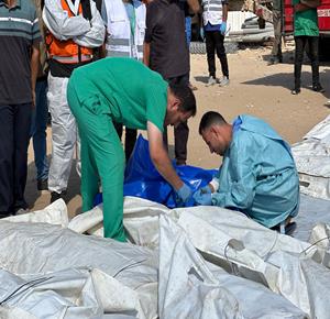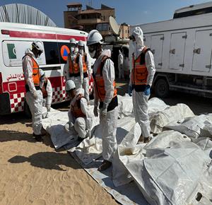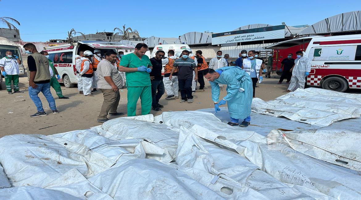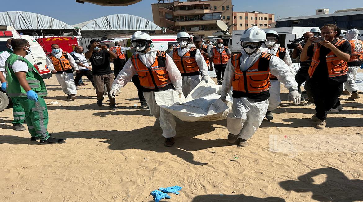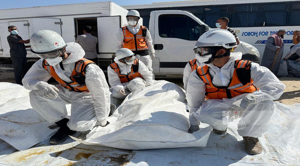 انتشال رفات أكثر من 400 شهيد من ساحات مجمع الشفاء الطبي في غزة، الذين ارتقوا في قصف الاحتلال على القطاع، ليتم دفنها في مقابر رسمية