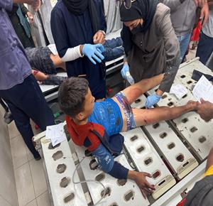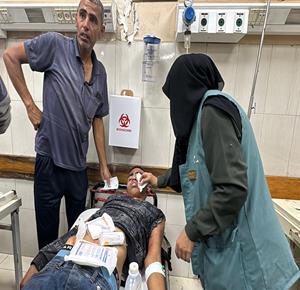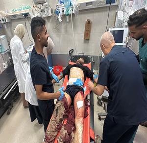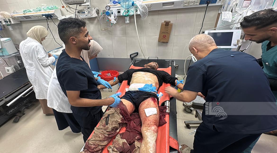 غزة - نقل جرحى إلى مستشفى ناصر جراء غارة إسرائيلية استهدفت مواطنين شرق خان يونس جنوب قطاع غزة