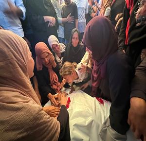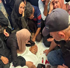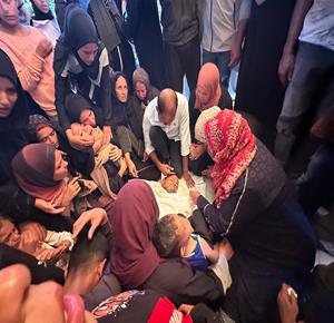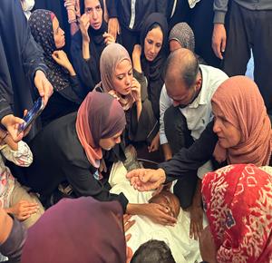 غزة - وداع وتشييع عدد من شهداء القصف الإسرائيلي في مستشفى ناصر في خانيونس جنوب قطاع غزة