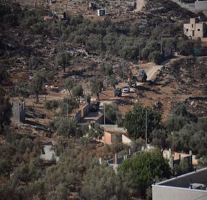 مواطنون يتفقدون مكان اعدام الاحتلال ثلاثة شبان في قرية كفر قود غرب جنين
