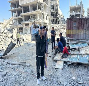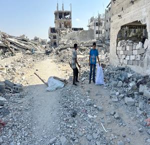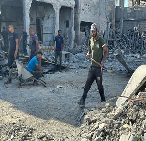 غزة - مواطنون يعودون إلى وسط مدينة خان يونس لتفقّد منازلهم المتضررة والبدء بأعمال الترميم الأولية رغم الدمار الواسع ونقص الإمكانيات الأساسية