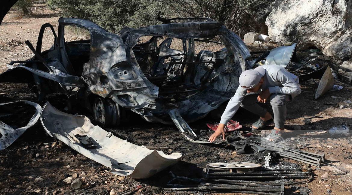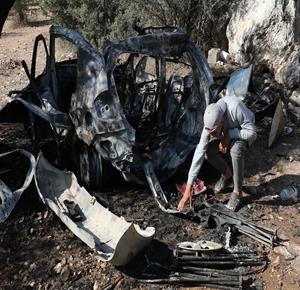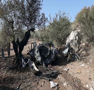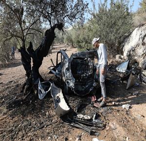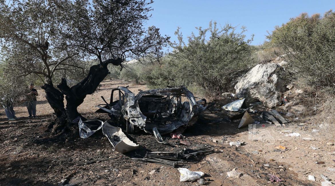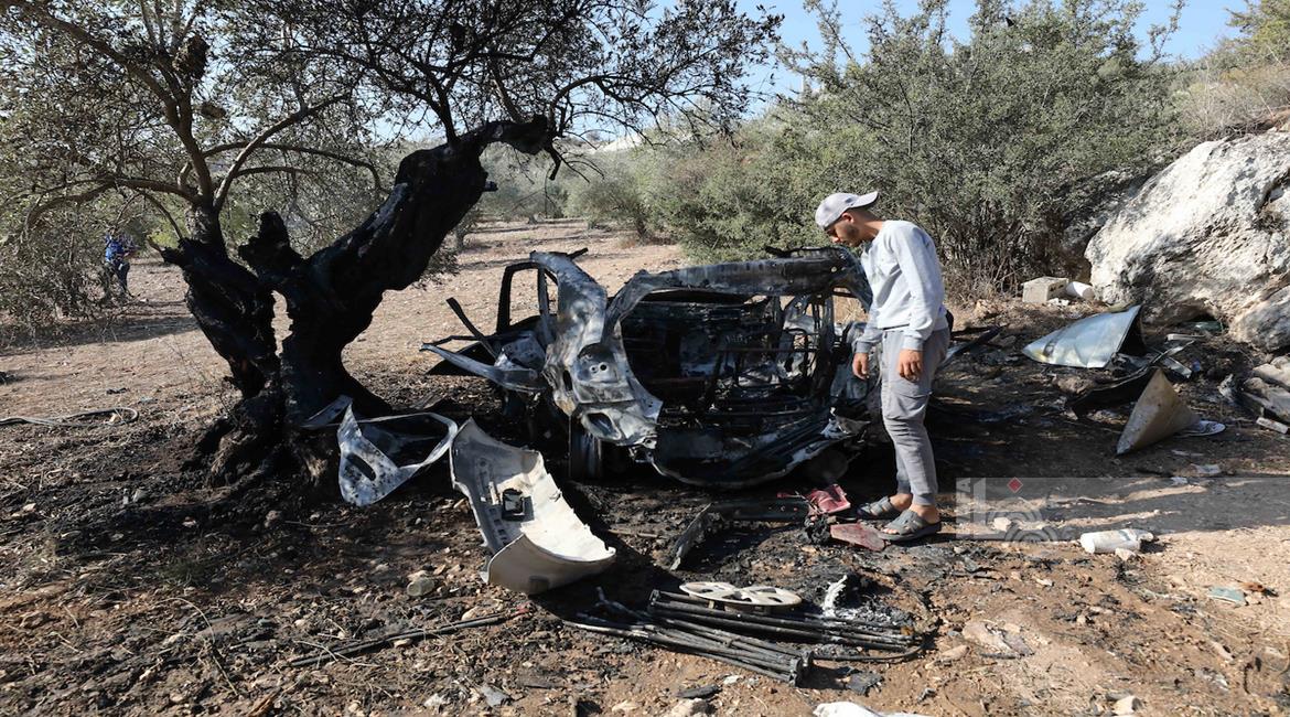 مواطنون يتفقدون مكان اعدام الاحتلال ثلاثة شبان في قرية كفر قود غرب جنين