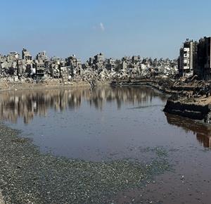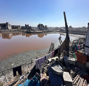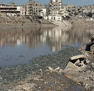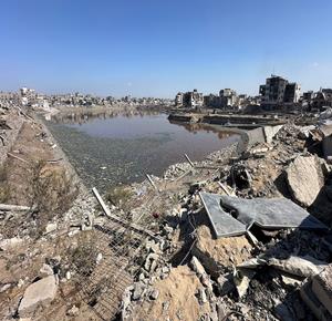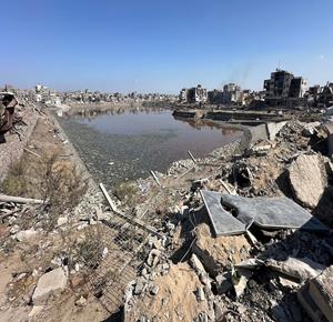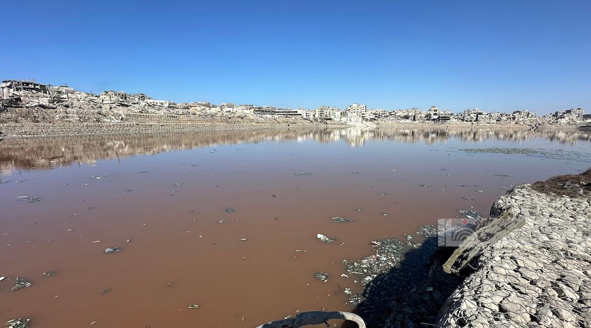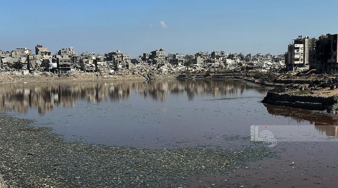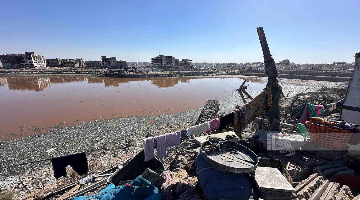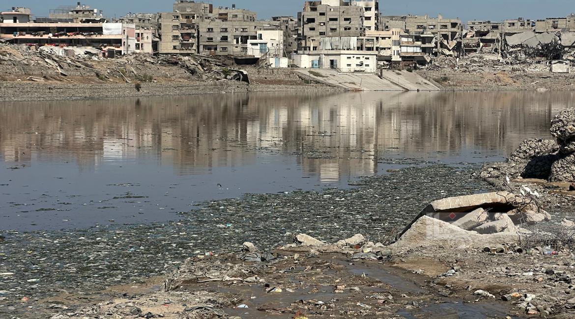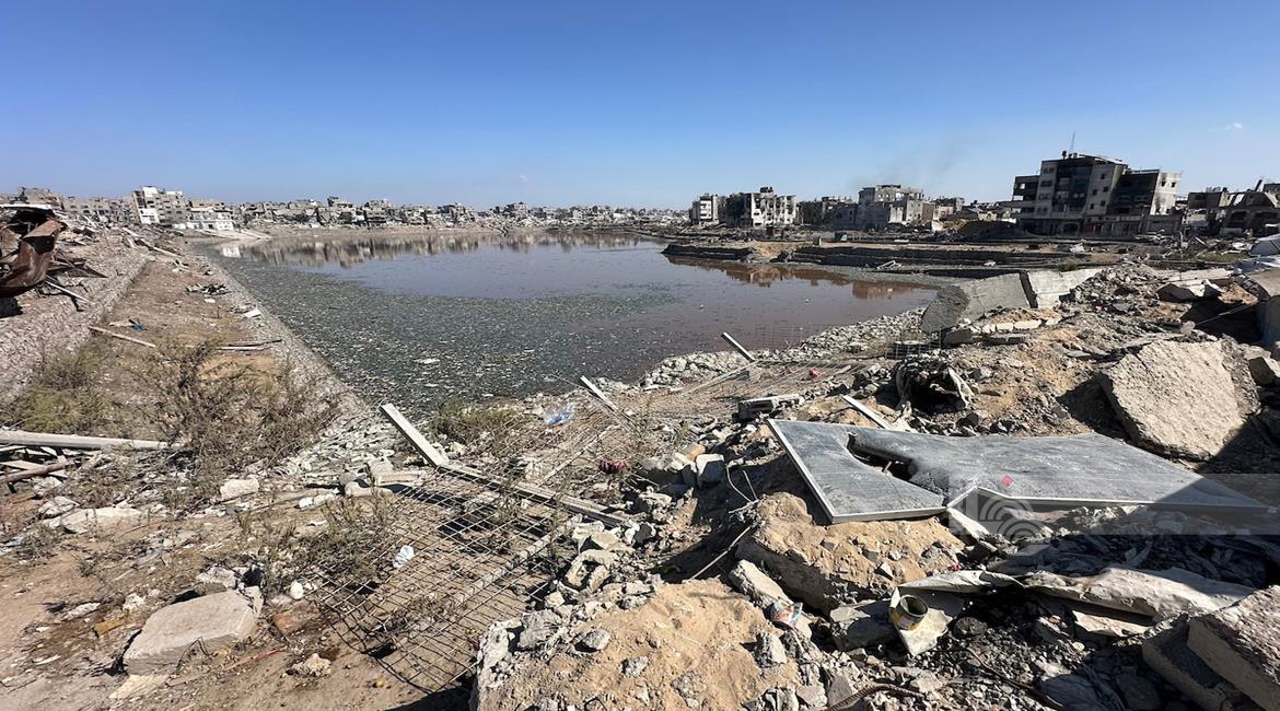غزة - بركة الشيخ رضوان في مدينة غزة تهدد العائلات المجاورة بخطر الفيضانات ونزوح جديد في ظل غياب الحلول والخدمات الأساسية