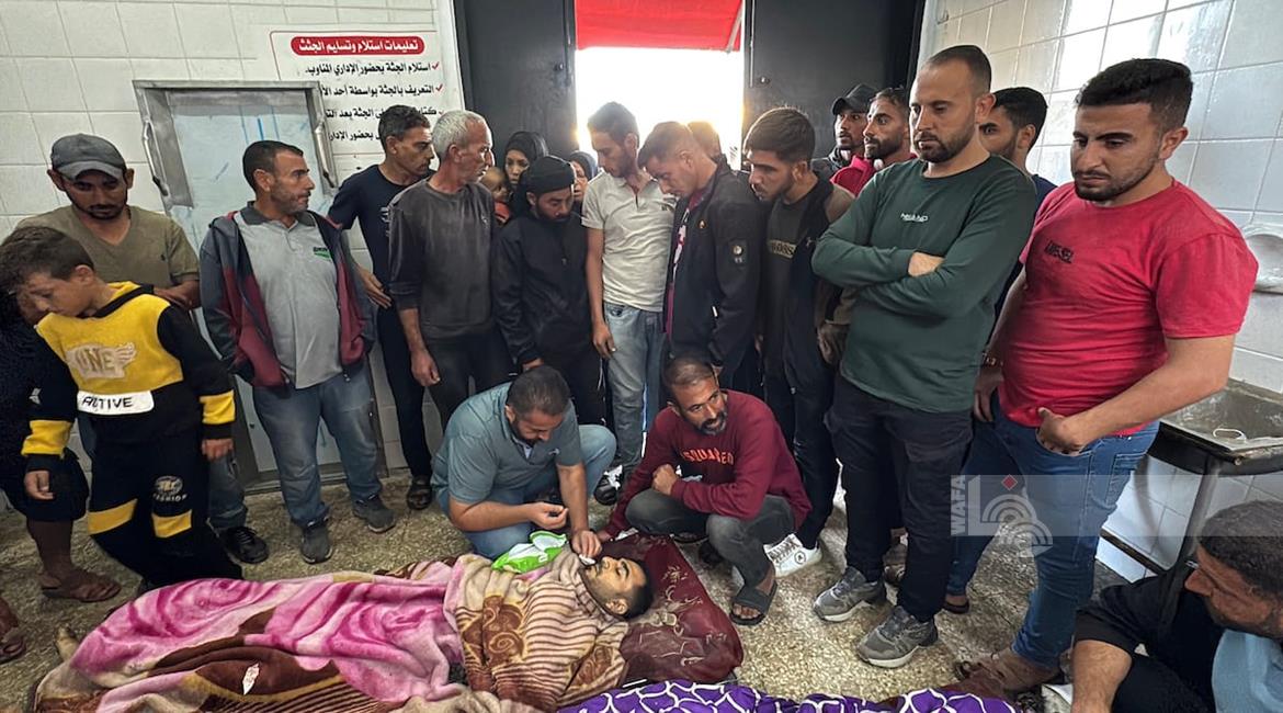 وداع وتشييع عدد من الشهداء في مستشفى الشفاء الطبي بمدينة غزة