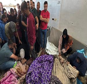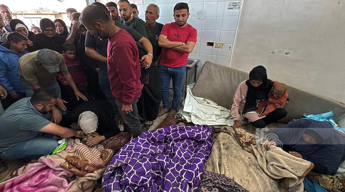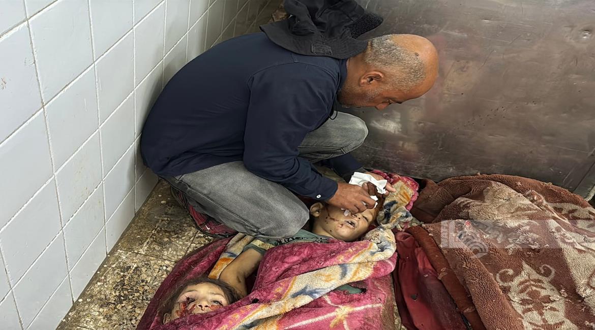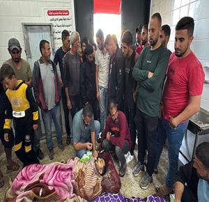 وداع وتشييع عدد من الشهداء من بينهم اطفال في مستشفى ناصر في خان يونس جنوب قطاع غزة