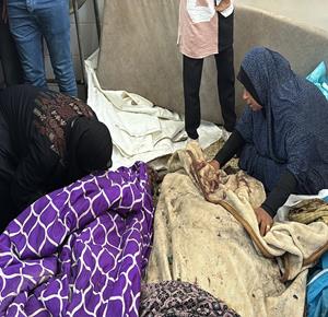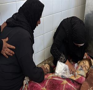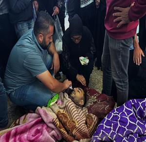 - وداع وتشييع عدد من الشهداء من بينهم اطفال في مستشفى شهداء الاقصى بدير البلح وسط قطاع غزة