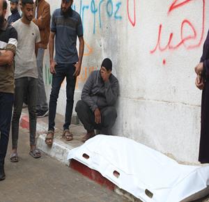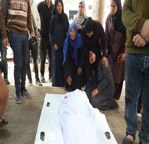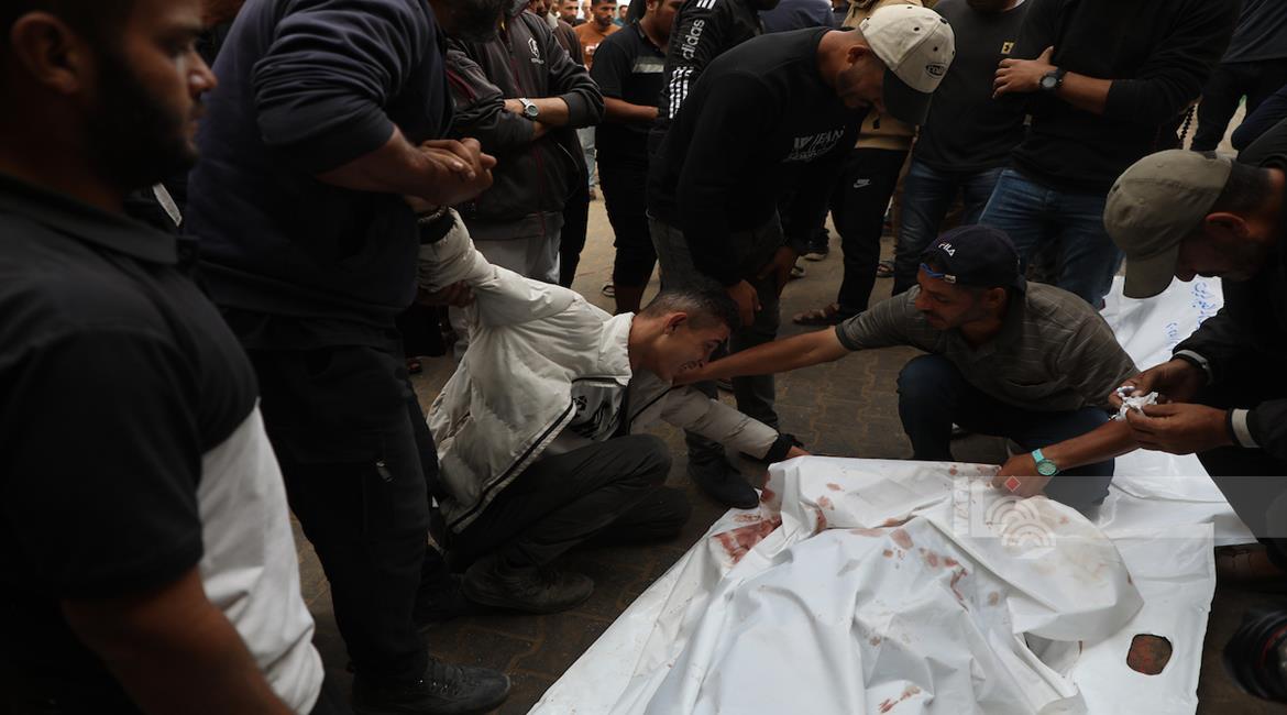 وداع وتشييع عدد من الشهداء من بينهم اطفال في مستشفى شهداء الاقصى بدير البلح وسط قطاع غزة