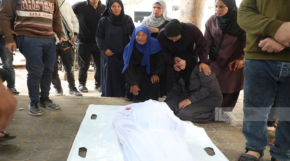 وداع وتشييع عدد من شهداء القصف الإسرائيلي في مستشفى ناصر في خانيونس جنوب قطاع غزة