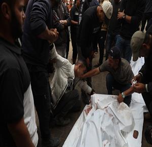 غزة - وداع وتشييع عدد من الشهداء في مستشفى الشفاء الطبي بمدينة غزة