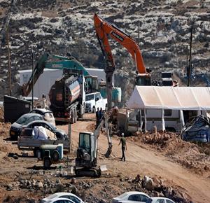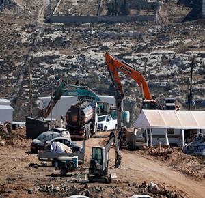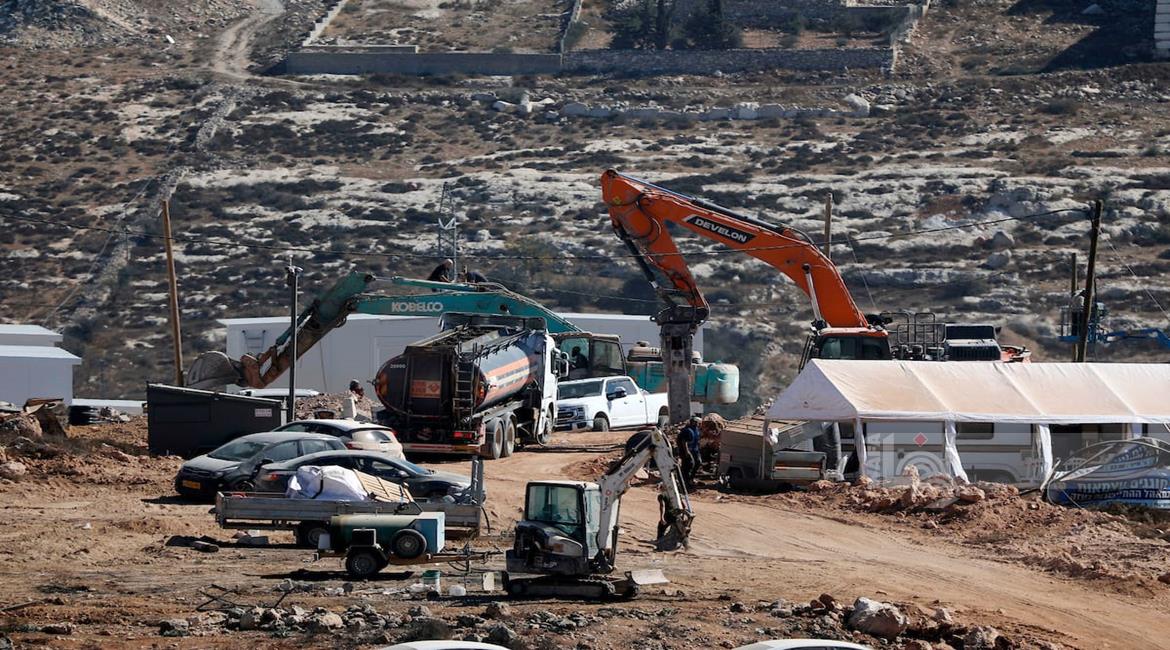 الخليل - مستعمرون يواصلون العمل على إنشاء بؤرة استعمارية جديدة شرق الخليل، حيث جُرفت مساحات شاسعة من الأراضي ونُقلت إليها منازل متنقلة خلال الليل استعدادًا للبناء.