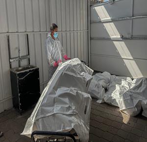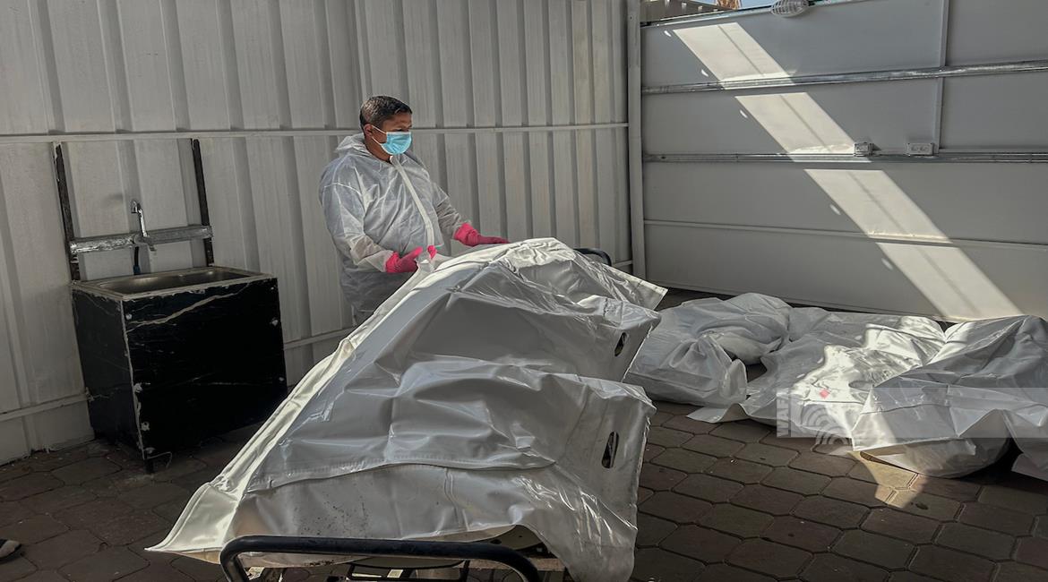 وداع وتشييع عدد من الشهداء في مستشفى الشفاء الطبي بمدينة غزة
