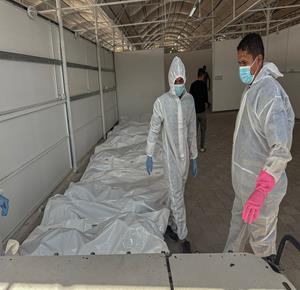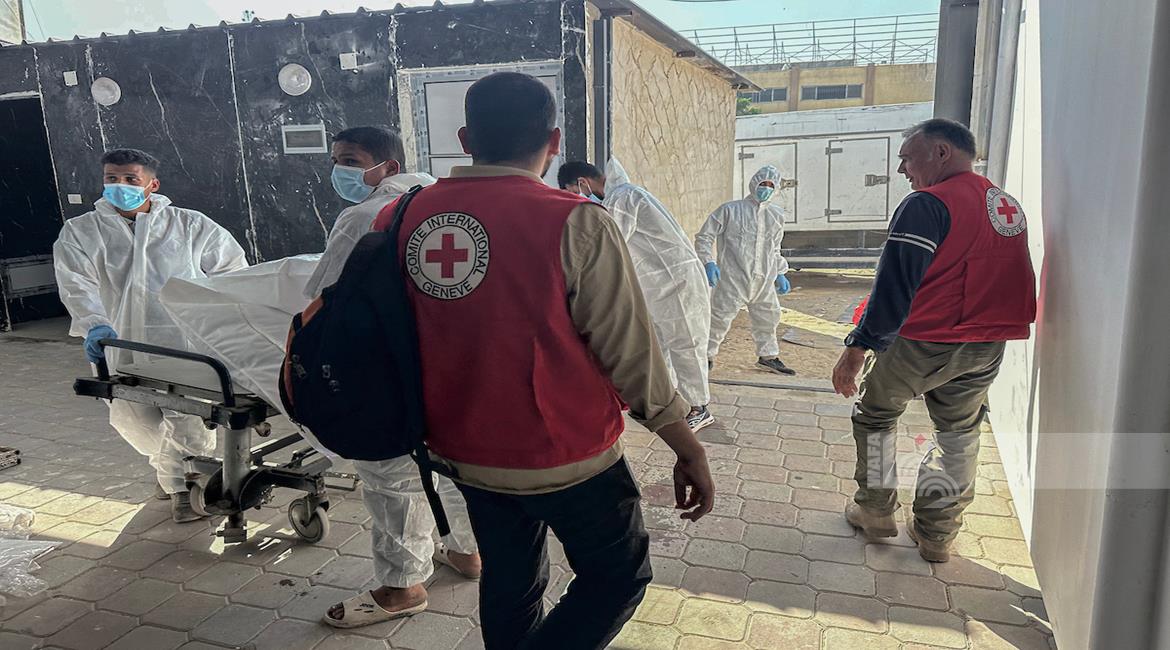 غزة - الصليب الأحمر ينقل جثامين شهداء كان يحتجزها الاحتلال الإسرائيلي إلى مستشفى ناصر في خان يونس جنوب غزة