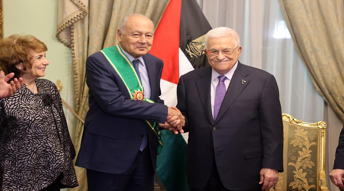 القاهرة - الرئيس محمود عباس أثناء لقاء و تكريم الأمين العام لجامعة الدول العربية أحمد أبو الغيط