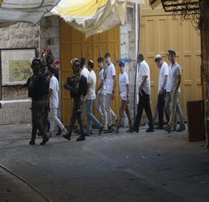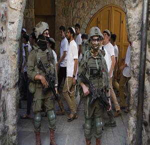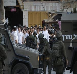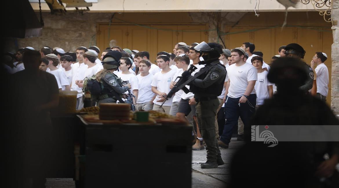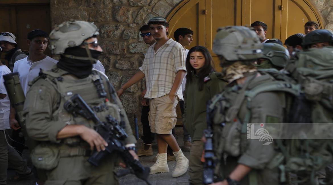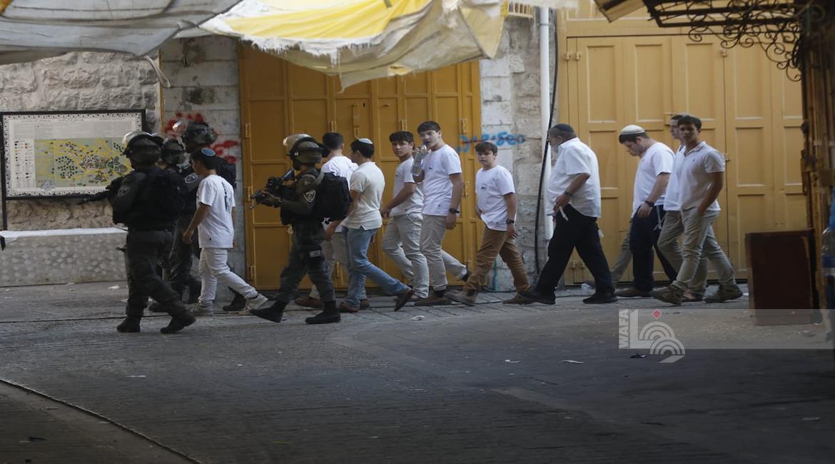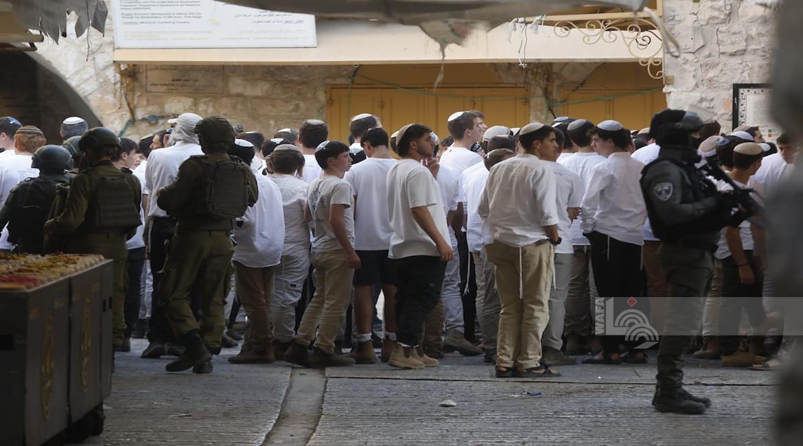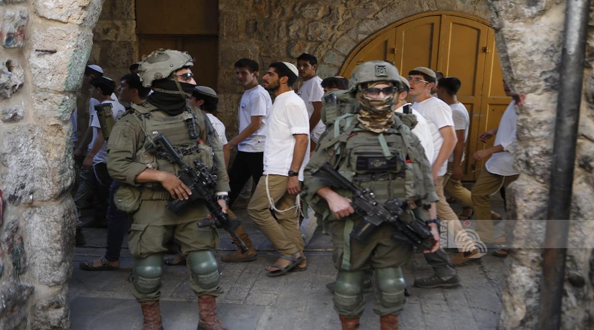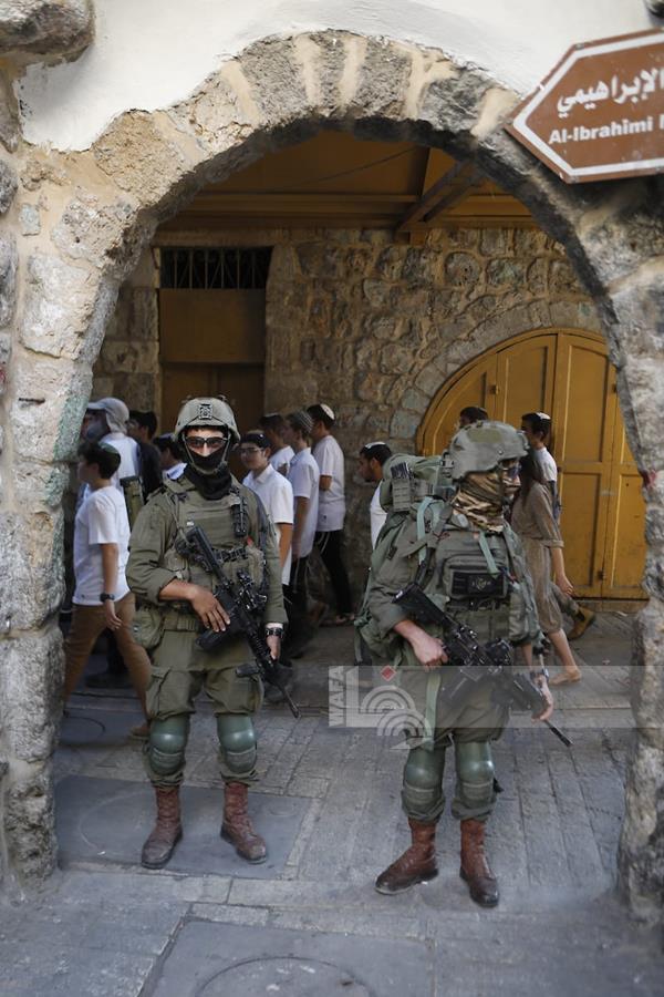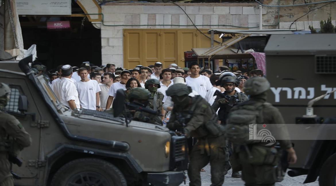 الخليل - مستعمرون بحماية جيش الاحتلال ينظمون جولة استفزازية في مدينة الخليل