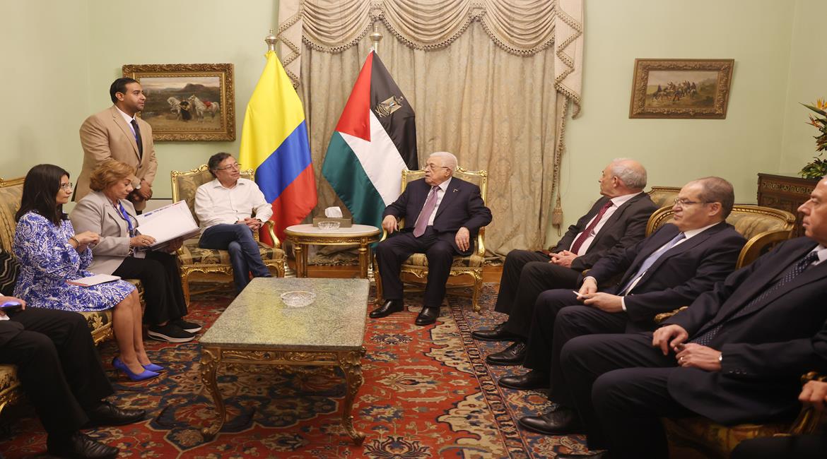 القاهرة - الرئيس محمود عباس، يستقبل رئيس كولومبيا غوستافو بيترو، في مقر إقامته في القاهرة