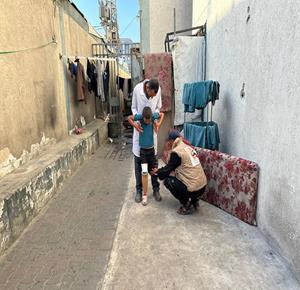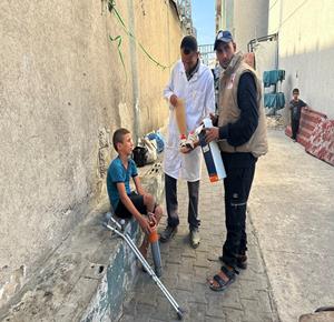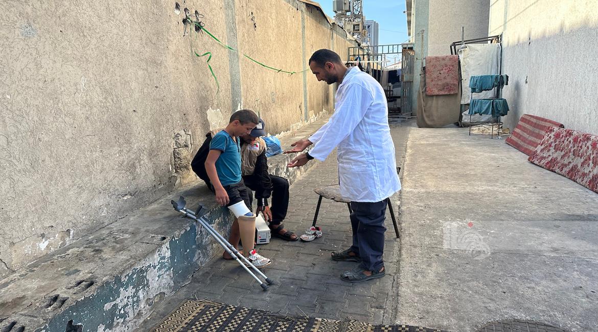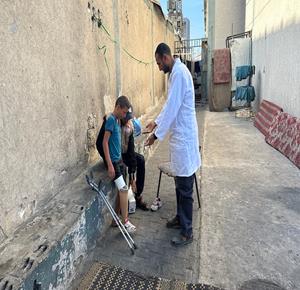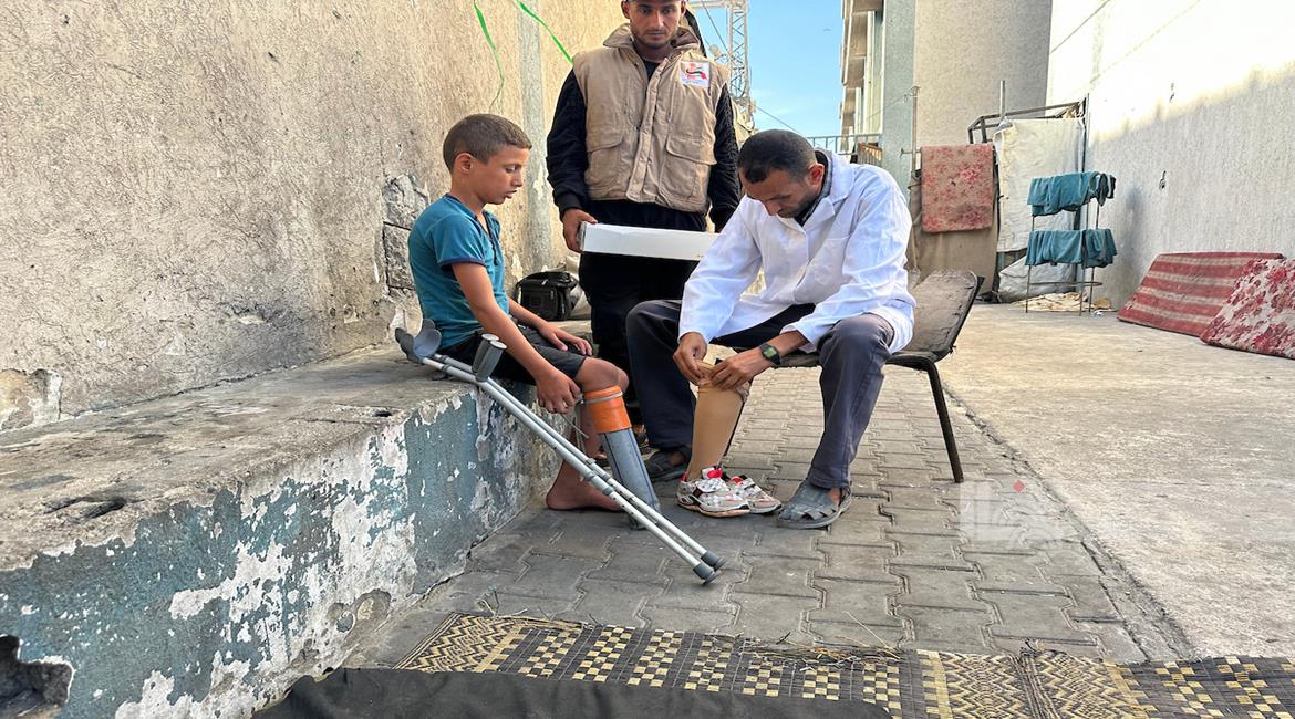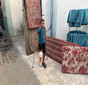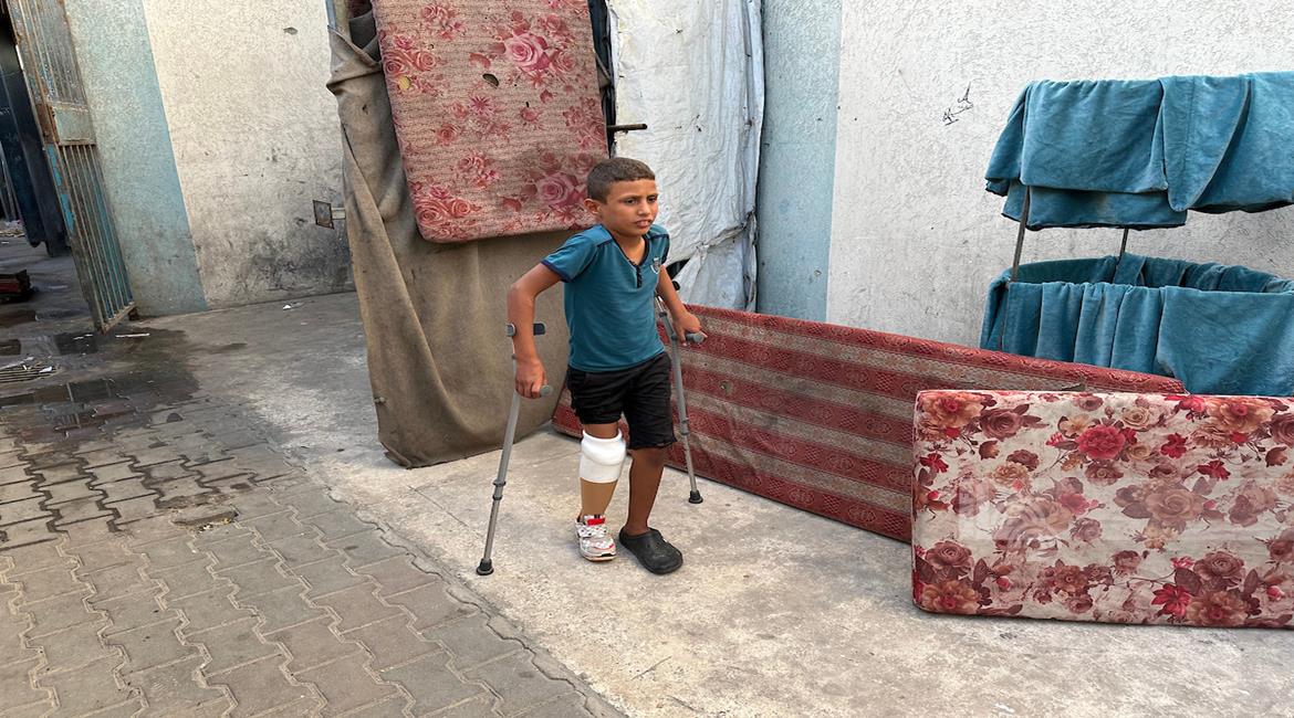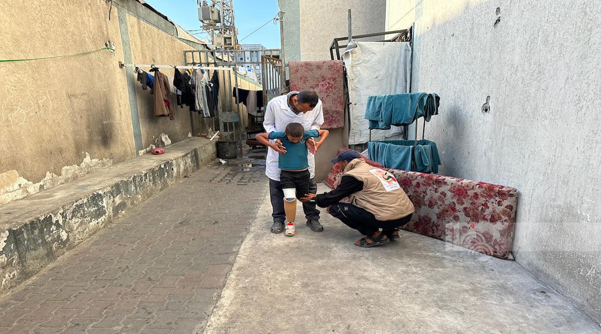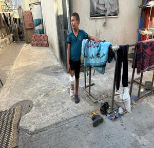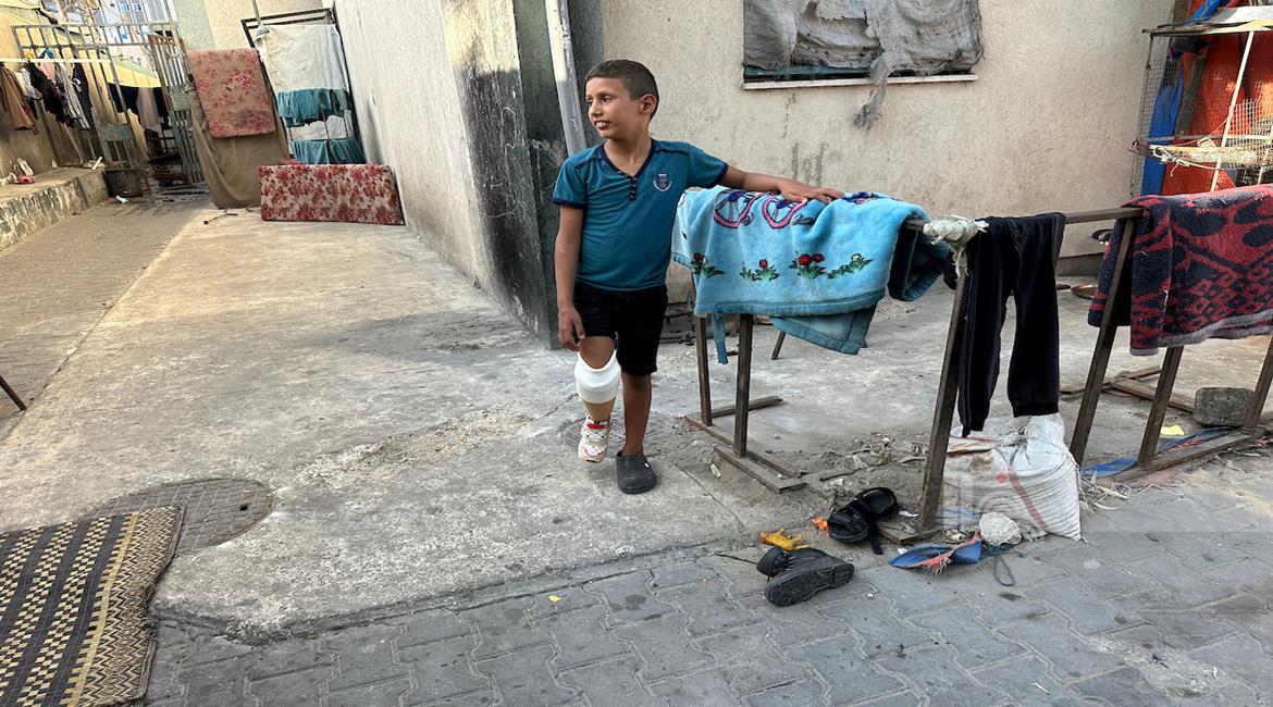 غزة - الطفل راتب أبو قليق، الذي فقد والدته وإخوته وبترت ساقه اليمنى خلال الحرب، يحصل على طرفٍ اصطناعي بدلا من أنبوب بلاستيكي ليساعده على الحركة ومتابعة حياته اليومية بشكل أفضل في دير البلح، وسط قطاع غزة
