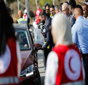 طواقم الصليب الأحمر تتسلم خمسة أسرى من قطاع غزة بعد أن أفرج عنهم الاحتلال، وتقوم بنقلهم إلى مستشفى شهداء الأقصى لتلقي العلاج