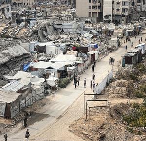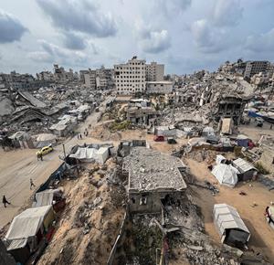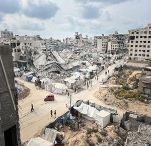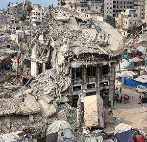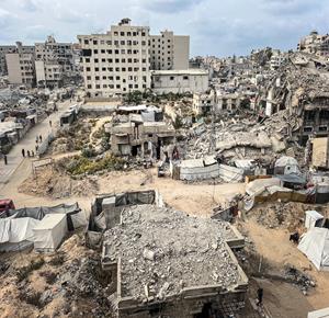 غزة - رغم الدمار الكبير والركام المتناثر بين أحياء مدينة غزة، مواطنون يلوذون إلى أنقاض منازلهم كملاجئ مؤقتة بعد أن قصفها الاحتلال الإسرائيلي خلال عدوانه على القطاع