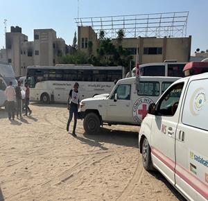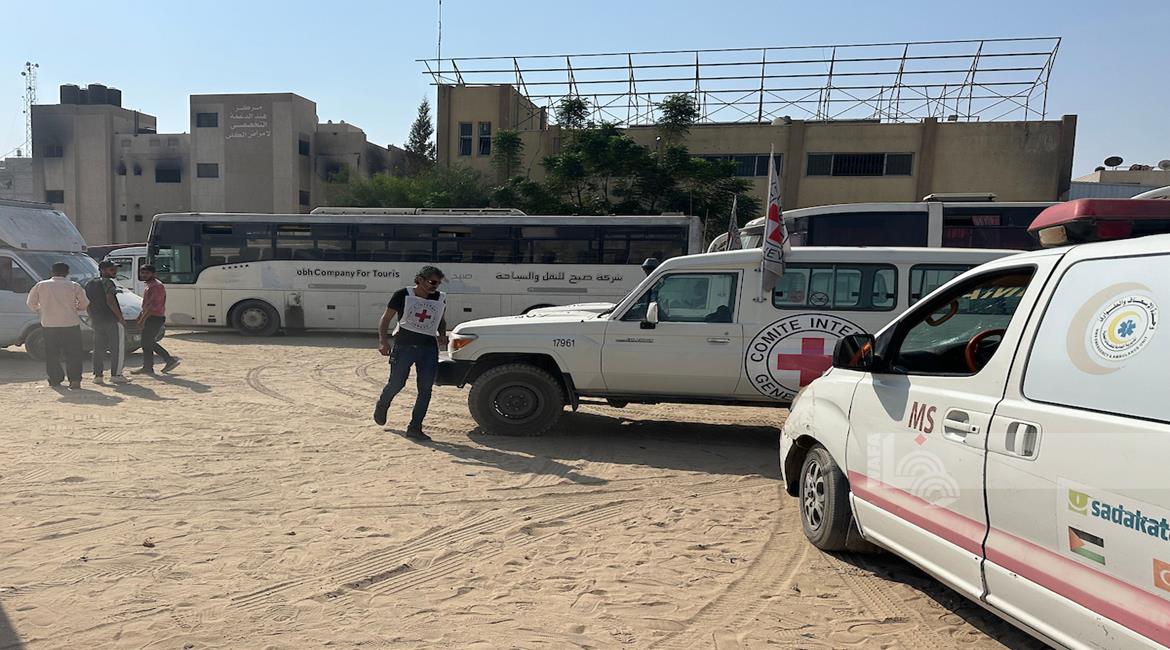غزة - الصليب الأحمر يسلم جثامين شهداء إلى مستشفى ناصر في خان يونس بعد استلامها من الاحتلال الإسرائيلي
