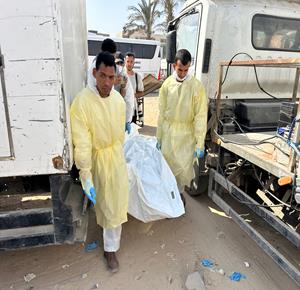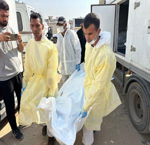 الصليب الأحمر يسلم جثامين شهداء إلى مستشفى ناصر في خان يونس بعد استلامها من الاحتلال الإسرائيلي