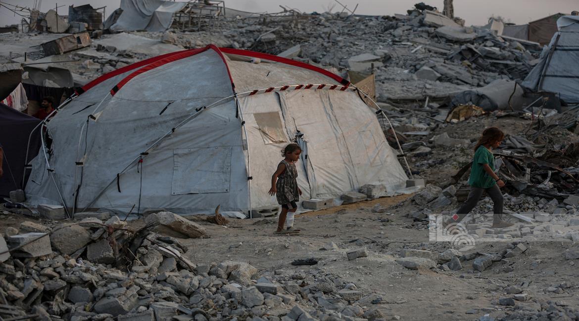 نازحون يكافحون للتكيف مع ظروف معيشية صعبة مع اقتراب فصل الشتاء، حيث يعيشون في خيام مهترئة لا تقيهم البرد ولا المطر، في مخيم النصيرات وسط قطاع غزة