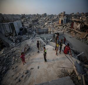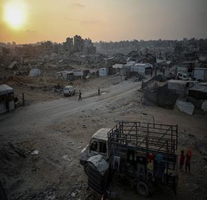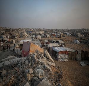 غزة - العائلات العائدة إلى جباليا شمال قطاع غزة تواصل حياتها بوسائل محدودة وسط المباني التي تحولت إلى أنقاض
