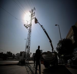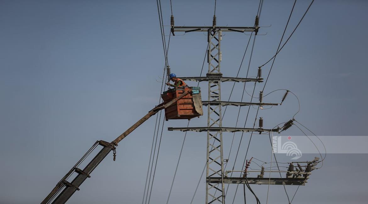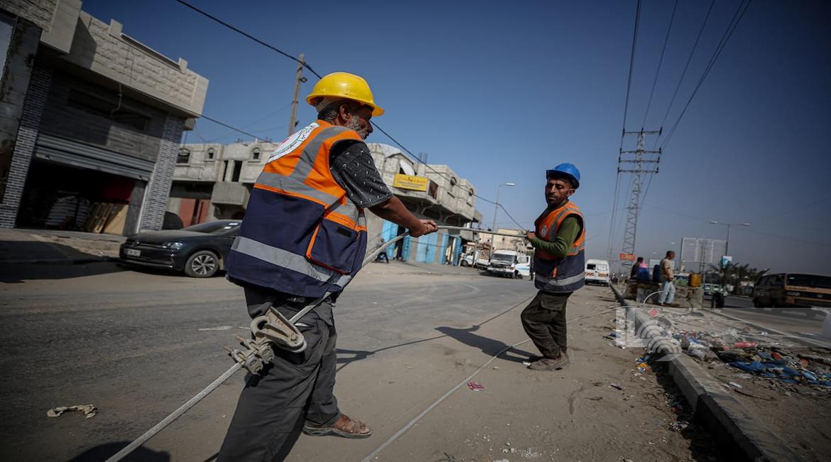 غزة - فرق من شركة الكهرباء تبدأ أعمال الصيانة والإصلاح لخطوط الكهرباء المتضررة في دير البلح