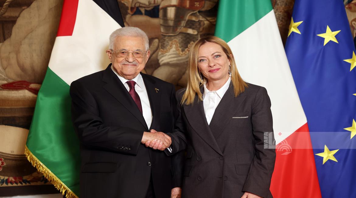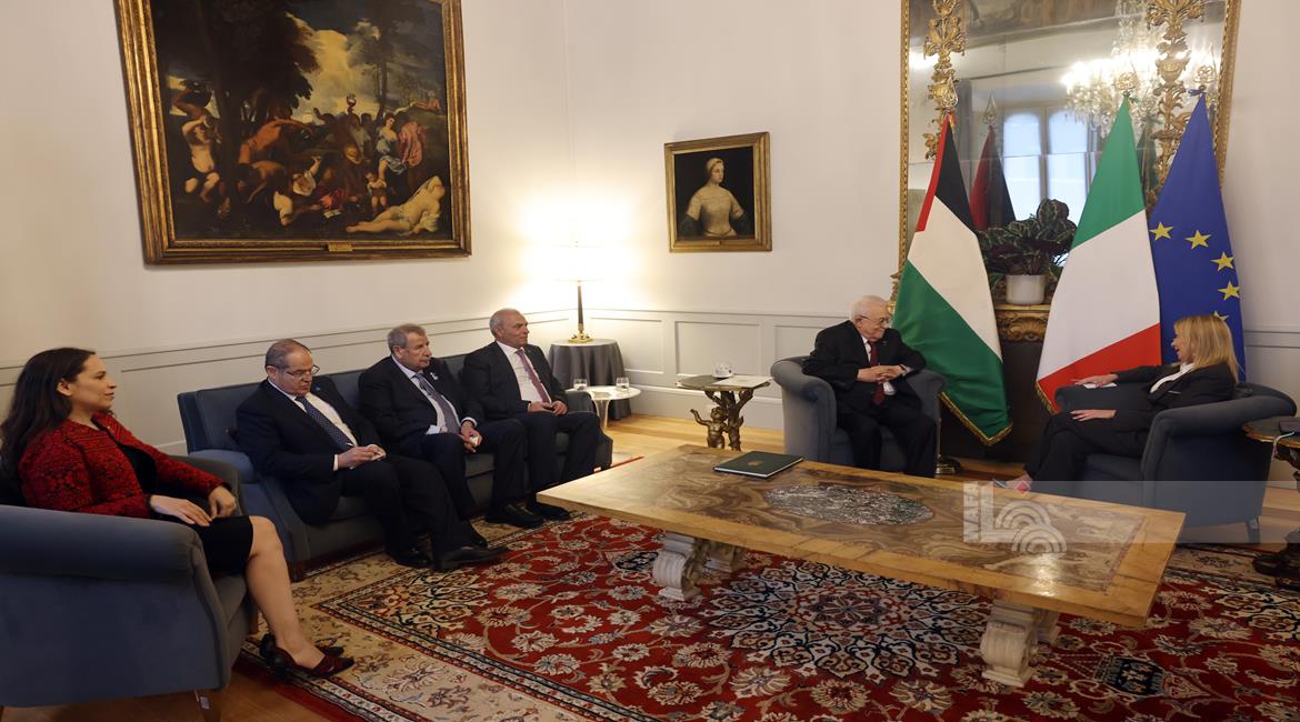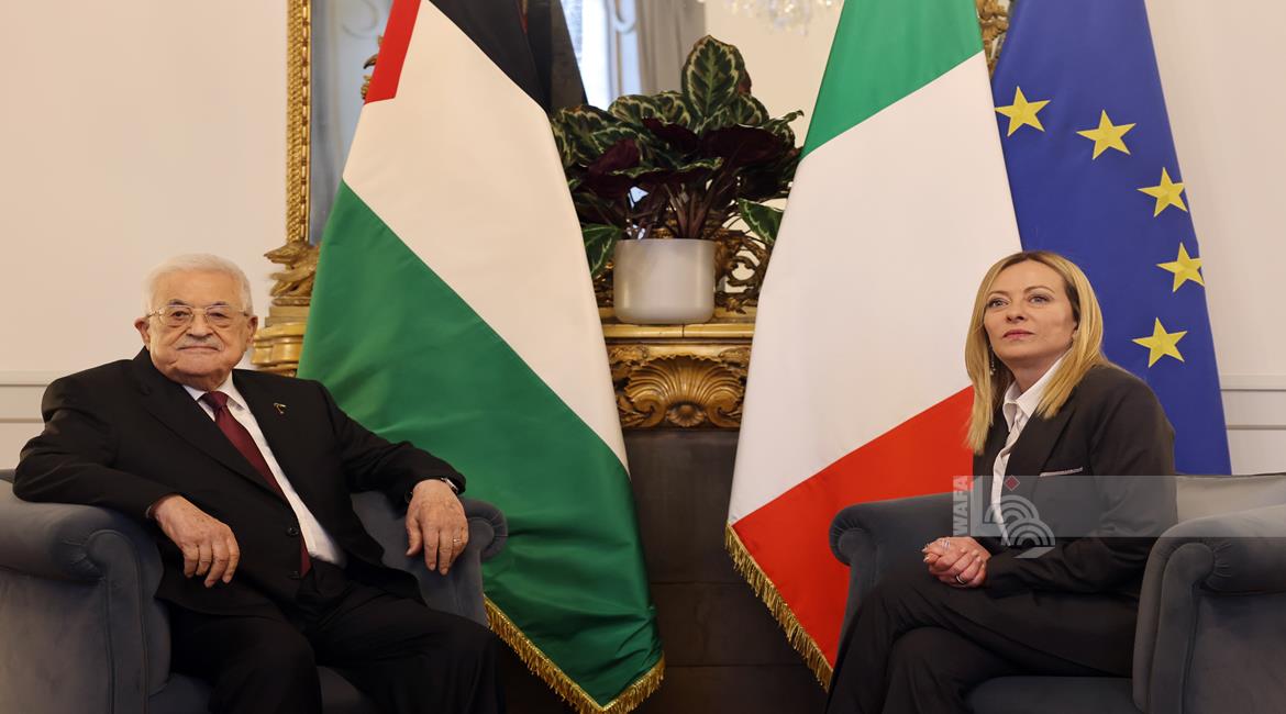 روما - الرئيس محمود عباس أثناء لقائه رئيسة الوزراء الإيطالية جورجيا ميلوني