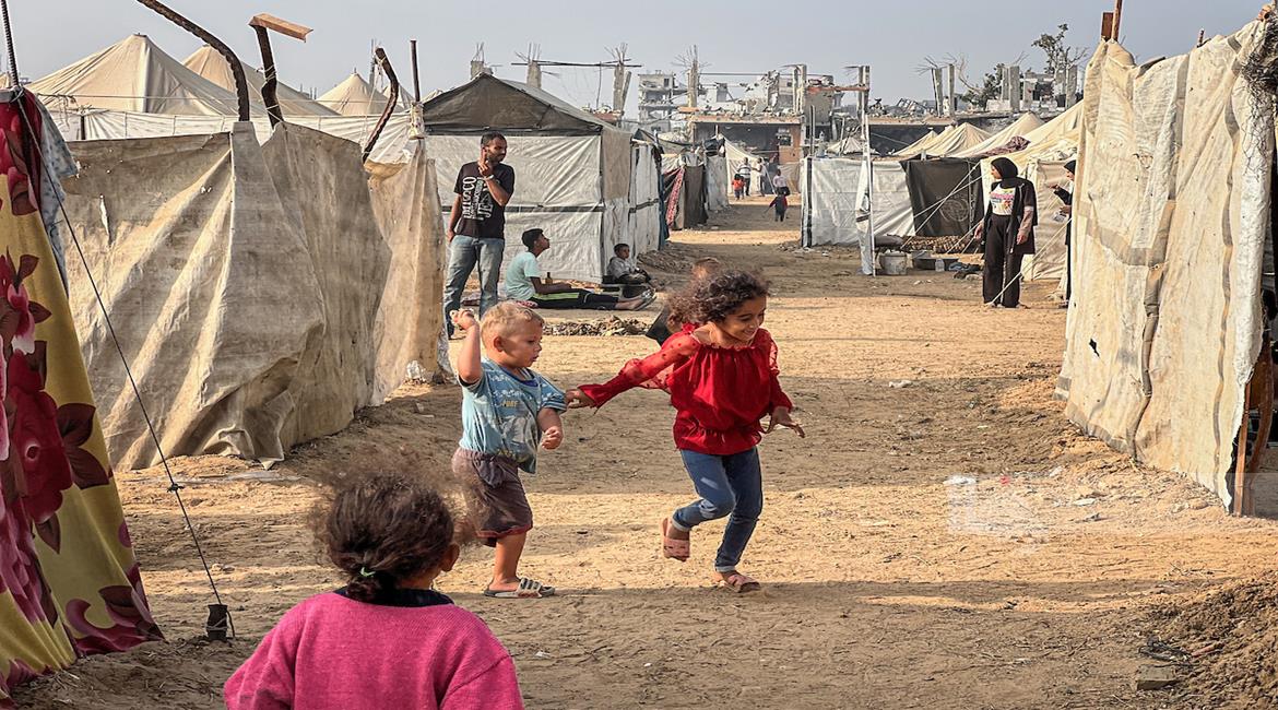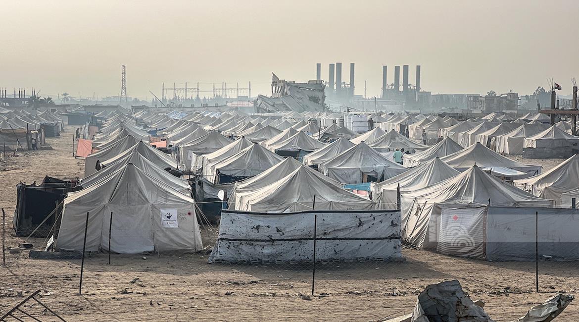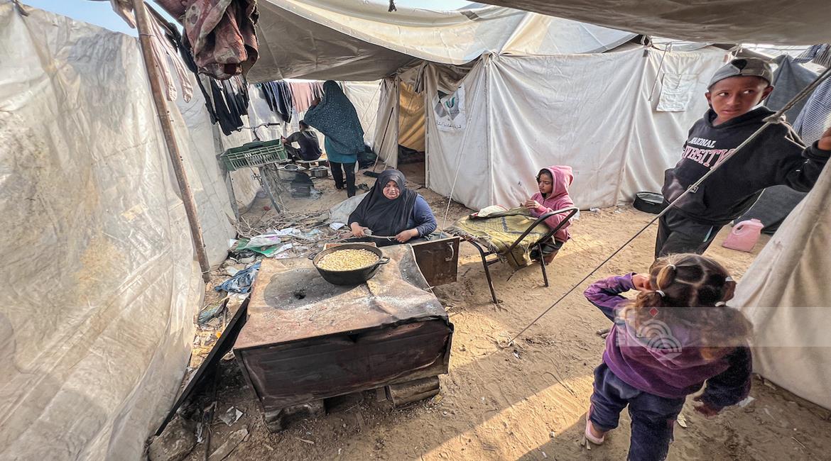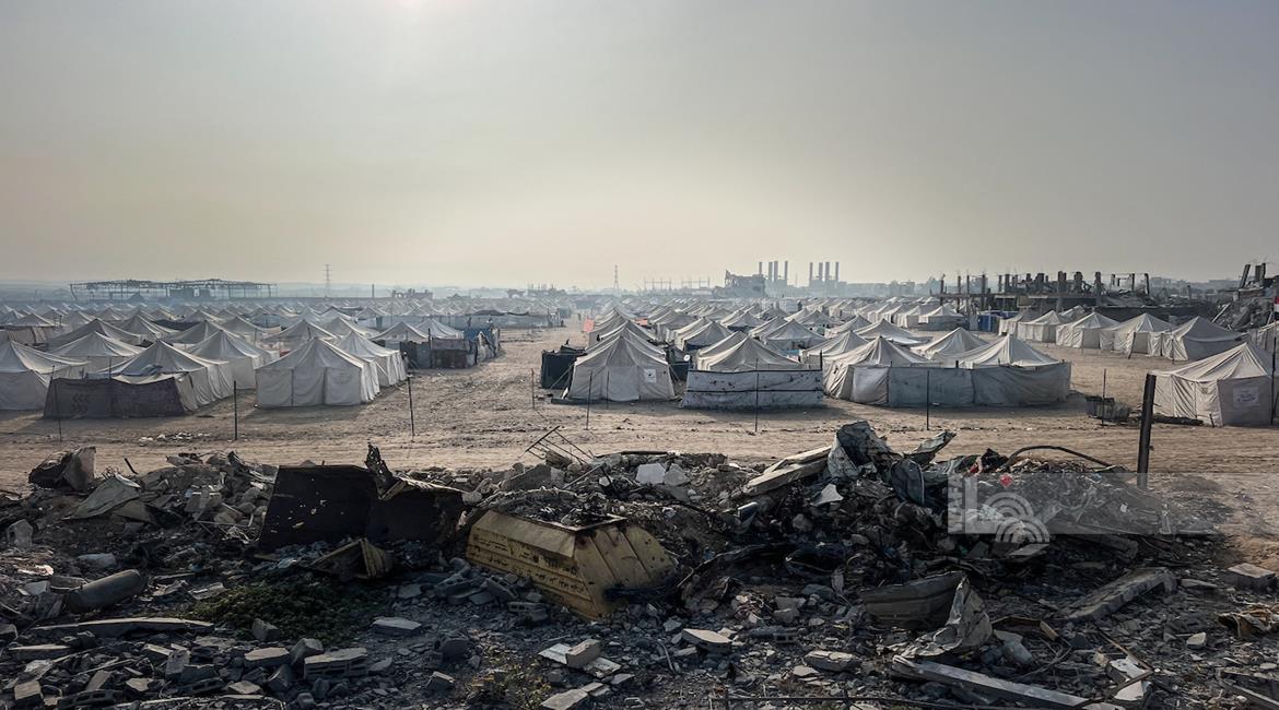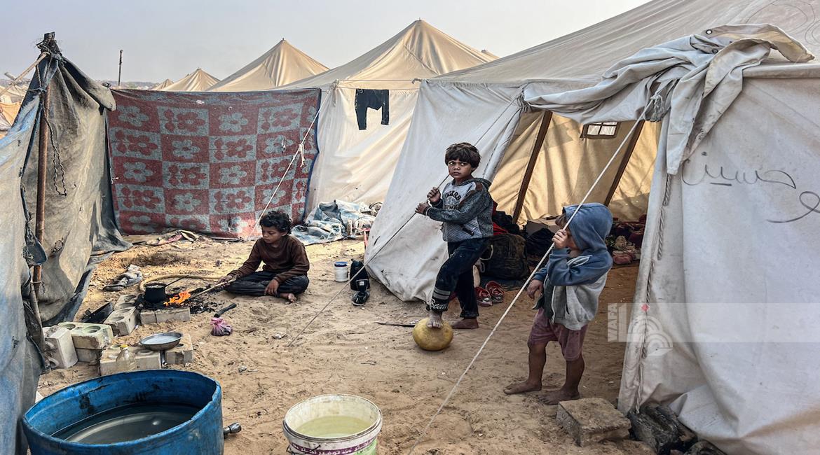 غزة - نازحون يعيشون في ظروف قاسية داخل الخيام المتكدسة مع اقتراب فصل الشتاء في مخيم النصيرات وسط قطاع غزة