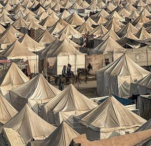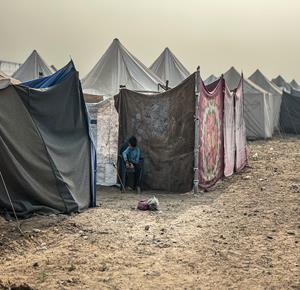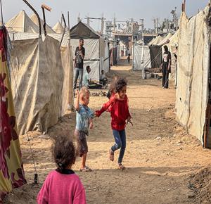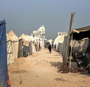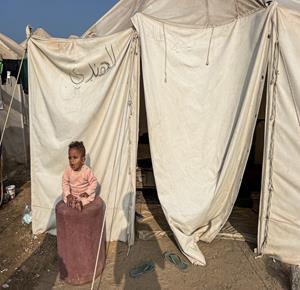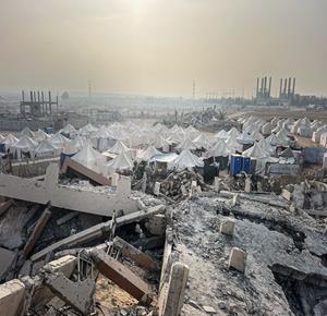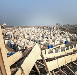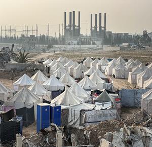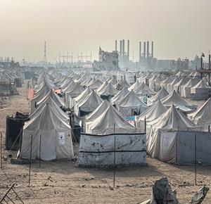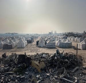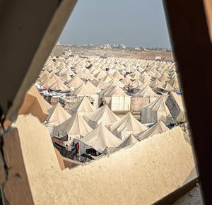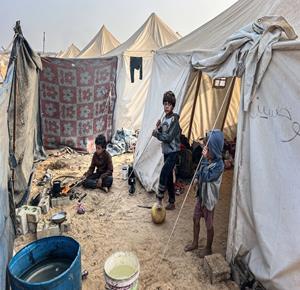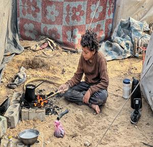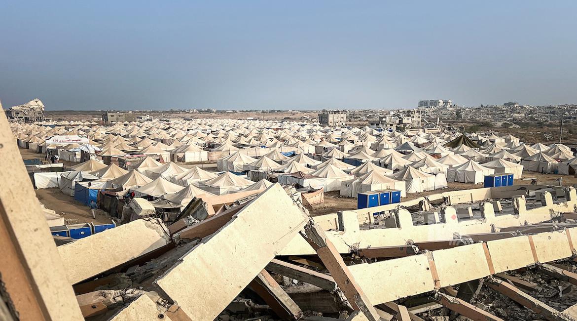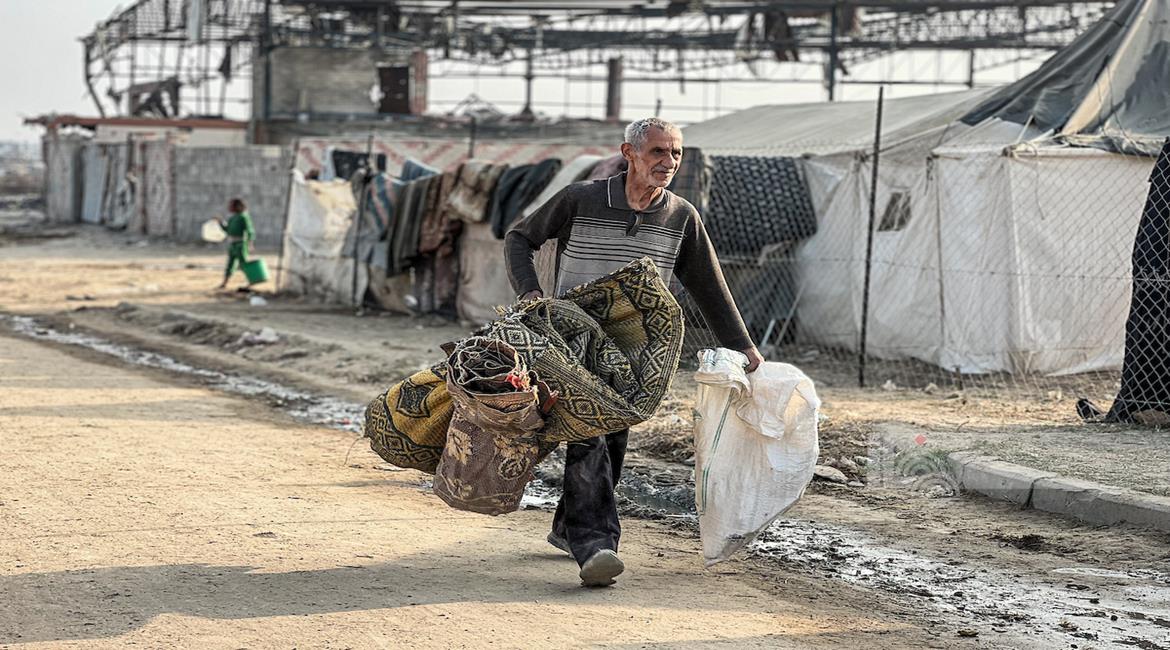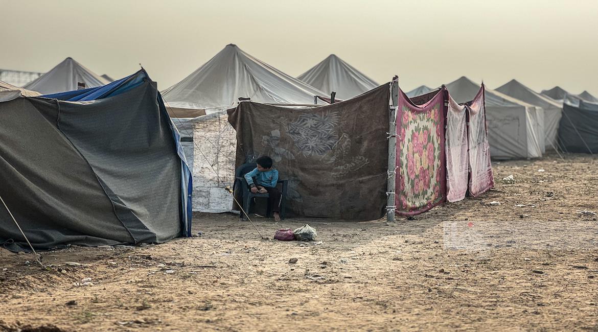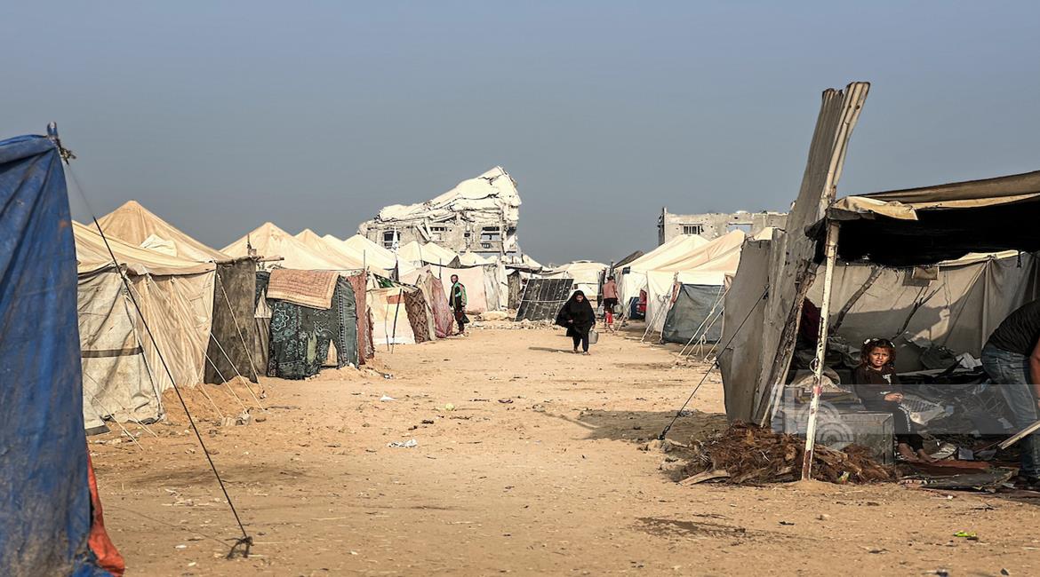 غزة - نازحون يعيشون في ظروف قاسية داخل الخيام المتكدسة مع اقتراب فصل الشتاء في مخيم النصيرات وسط قطاع غزة