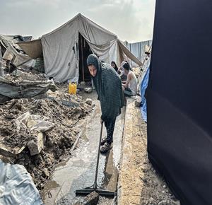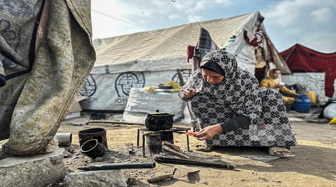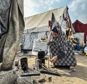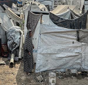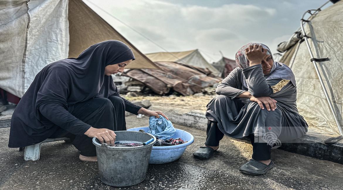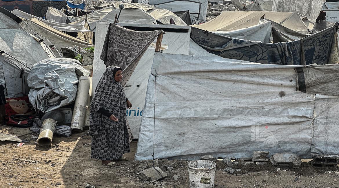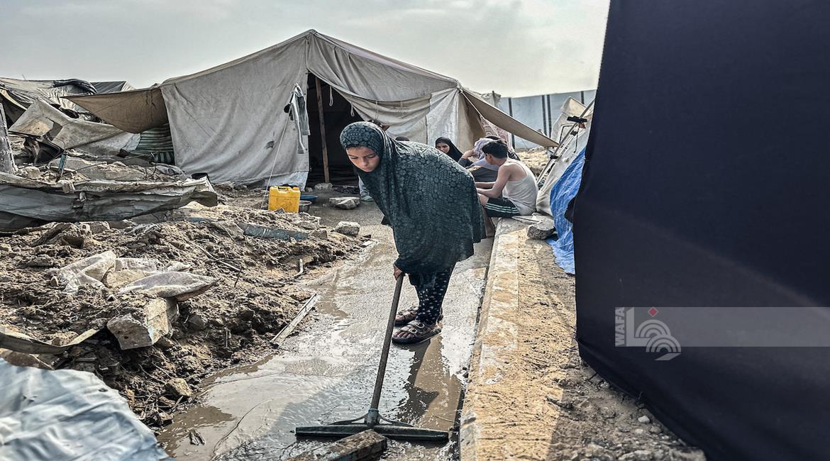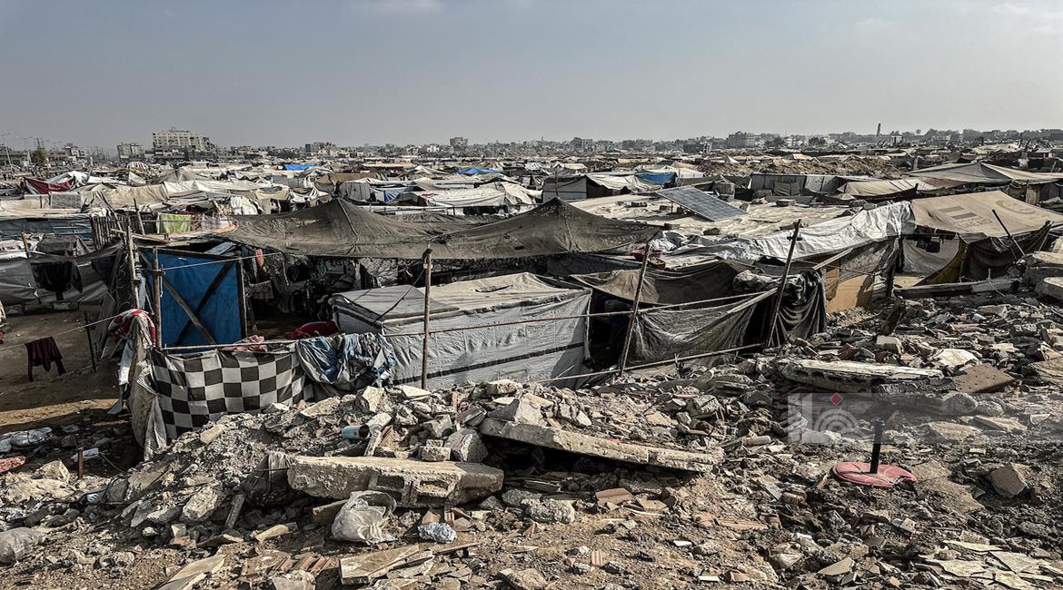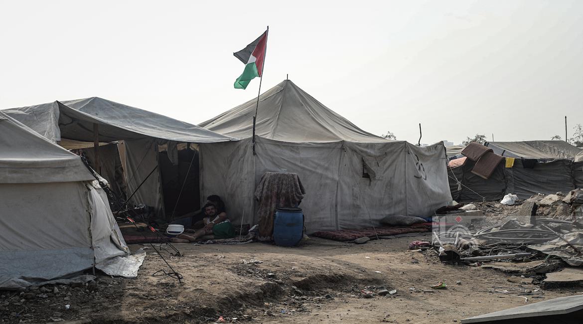 غزة - معاناة المواطنين في الخيام المتكدسة فوق أنقاض منازلهم المدمرة على جانبي شارع صلاح الدين وسط غزة