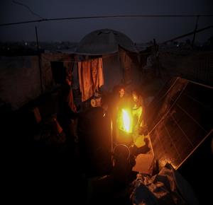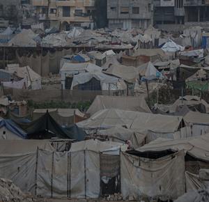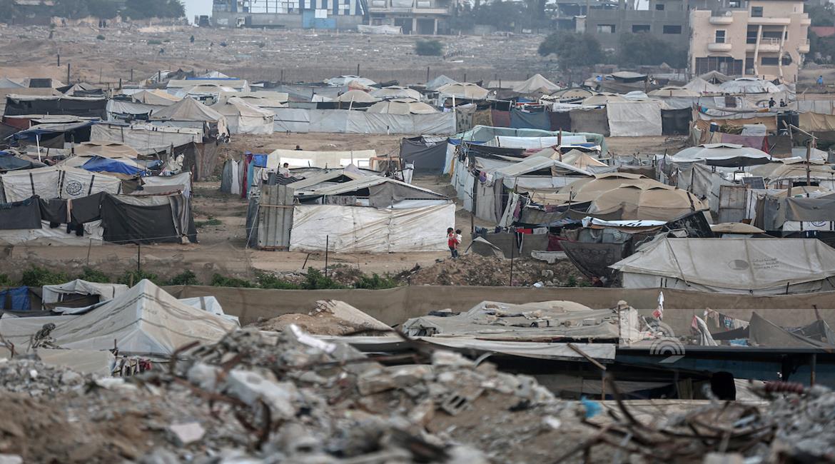 نازحون يعيشون في ظروف قاسية داخل الخيام المتكدسة مع اقتراب فصل الشتاء في مخيم النصيرات وسط قطاع غزة