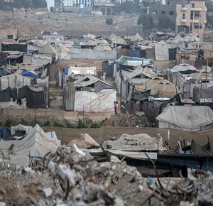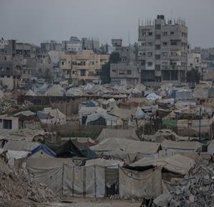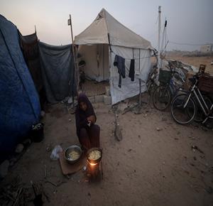 غزة - نازحون يكافحون في ظروف إنسانية صعبة من أجل البقاء، بين أنقاض منازلهم في مخيم البريج الذي دمره الاحتلال خلال عدوانه على قطاع غزة.