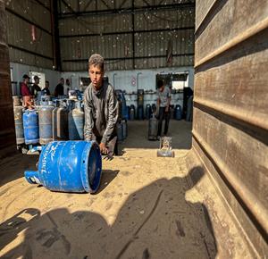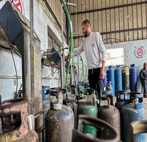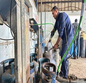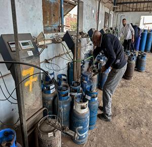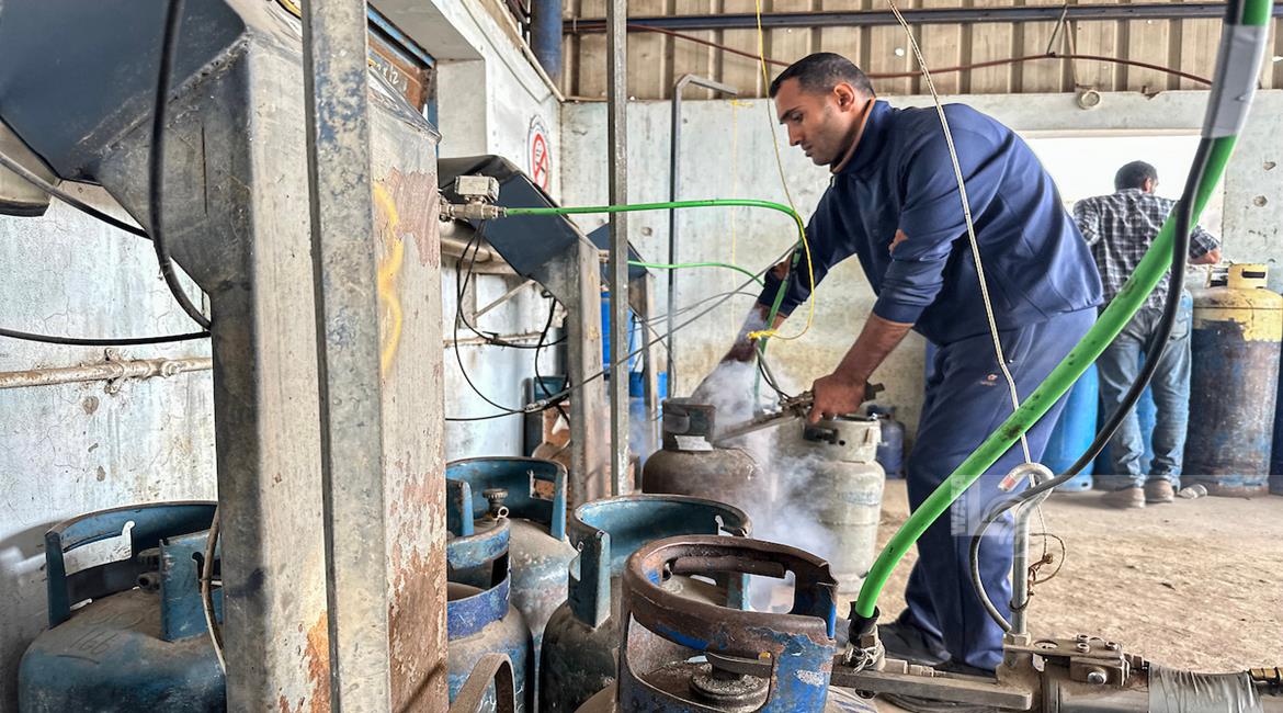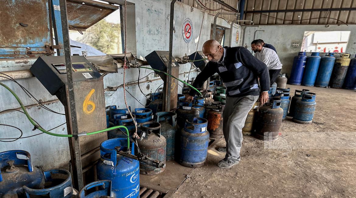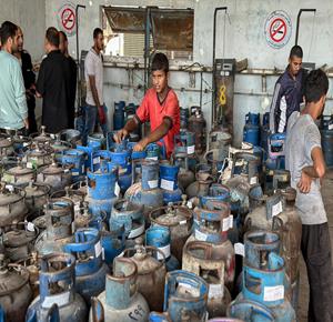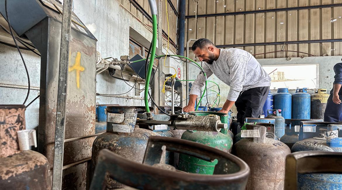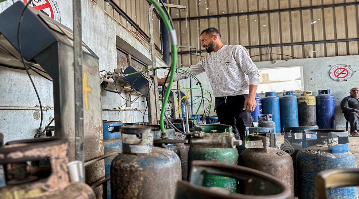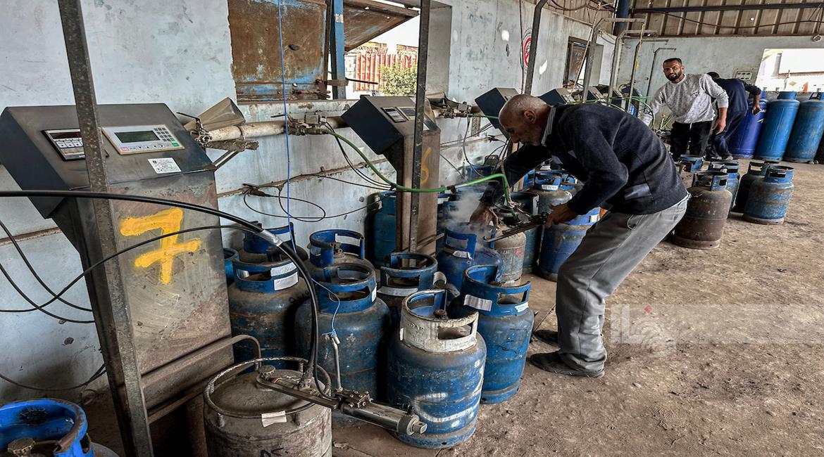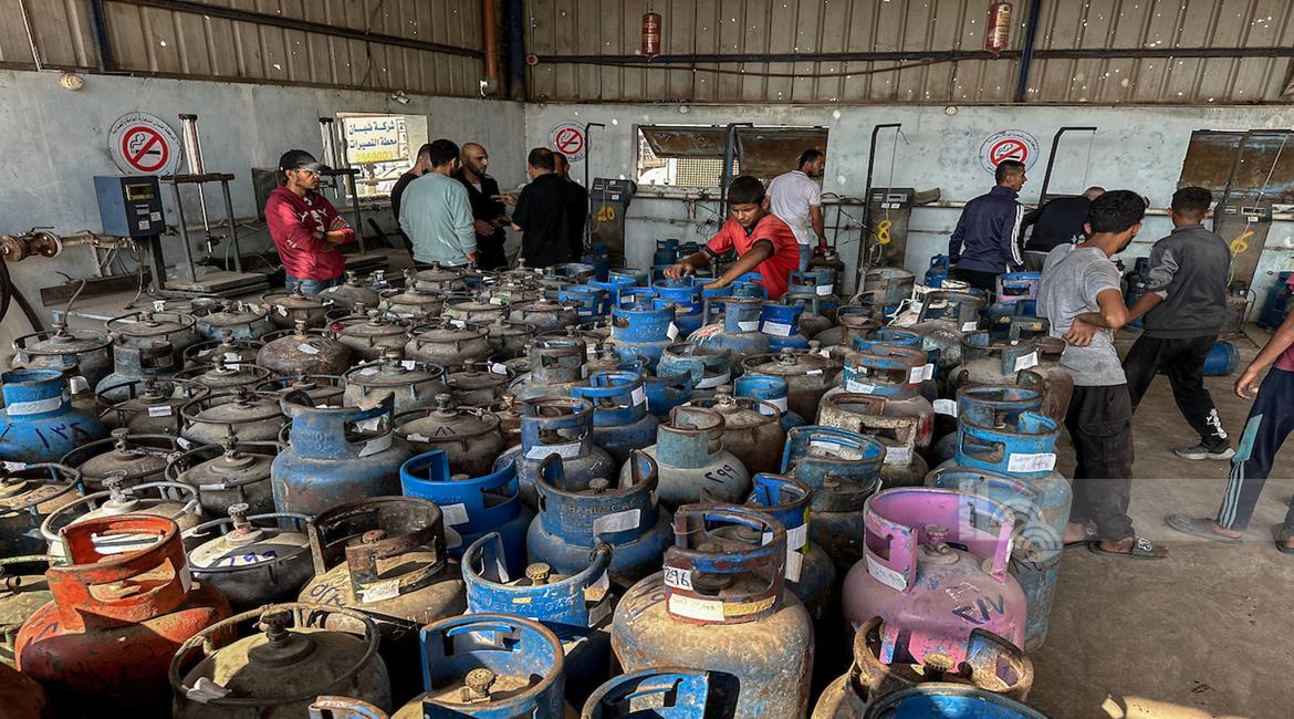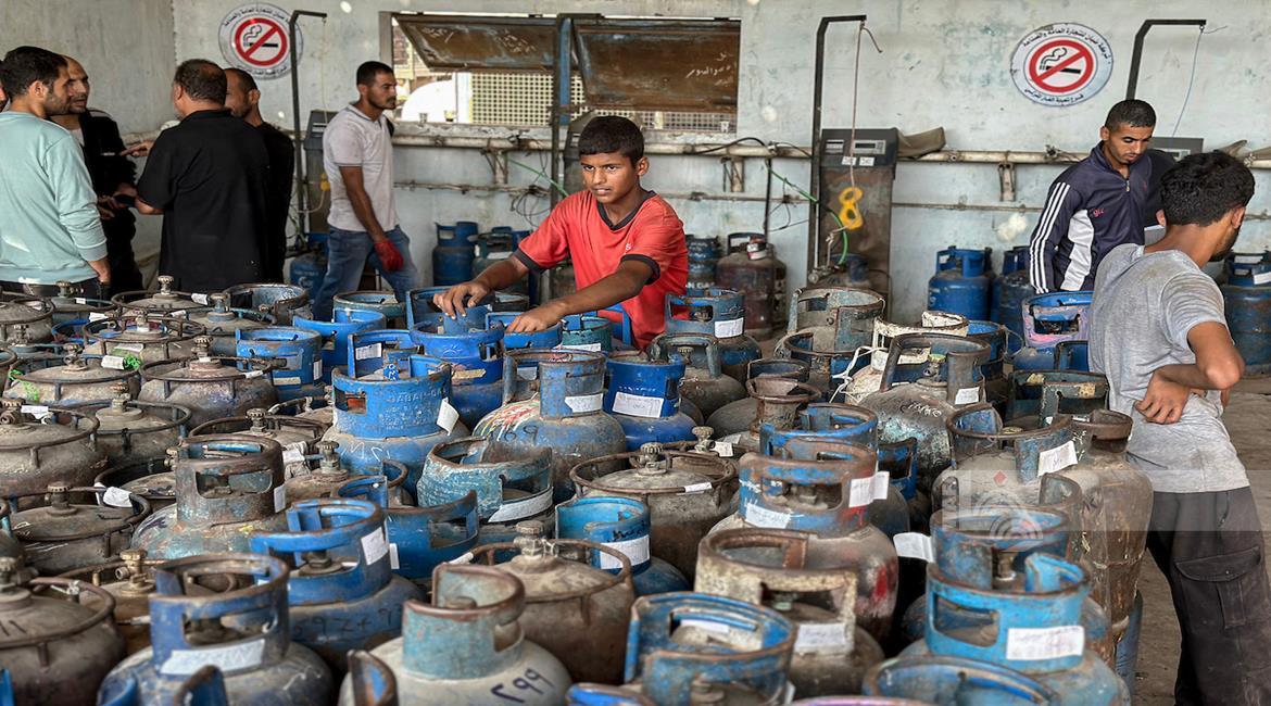 غزة - مواطنون يتوافدون لتعبئة أسطوانات غاز الطهي في محطة تعبئة بالنصيرات، وسط قطاع غزة، في وقت يعاني فيه القطاع من أزمة حادة في إمدادات الوقود