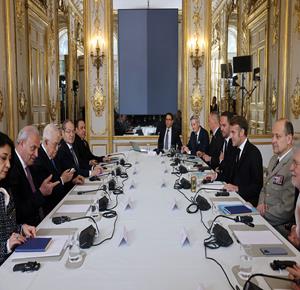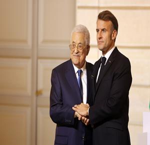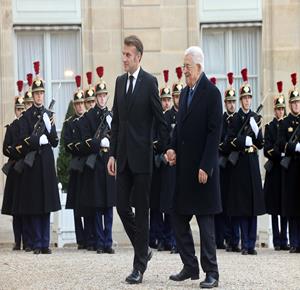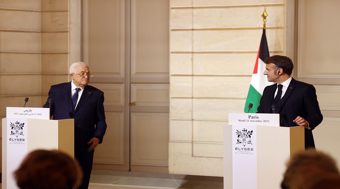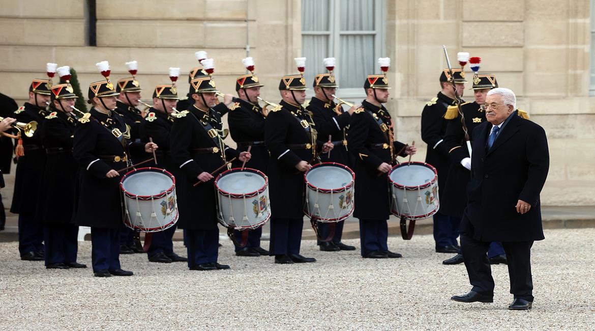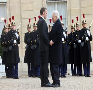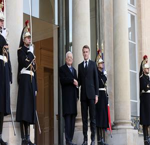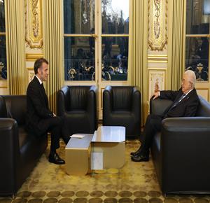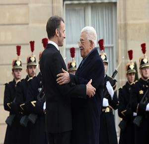 باريس - الرئيس محمود عباس أثناء لقائه الرئيس الفرنسي إيمانويل ماكرون.