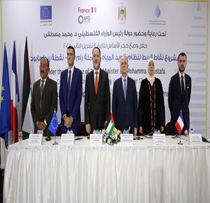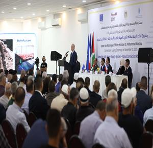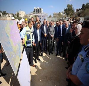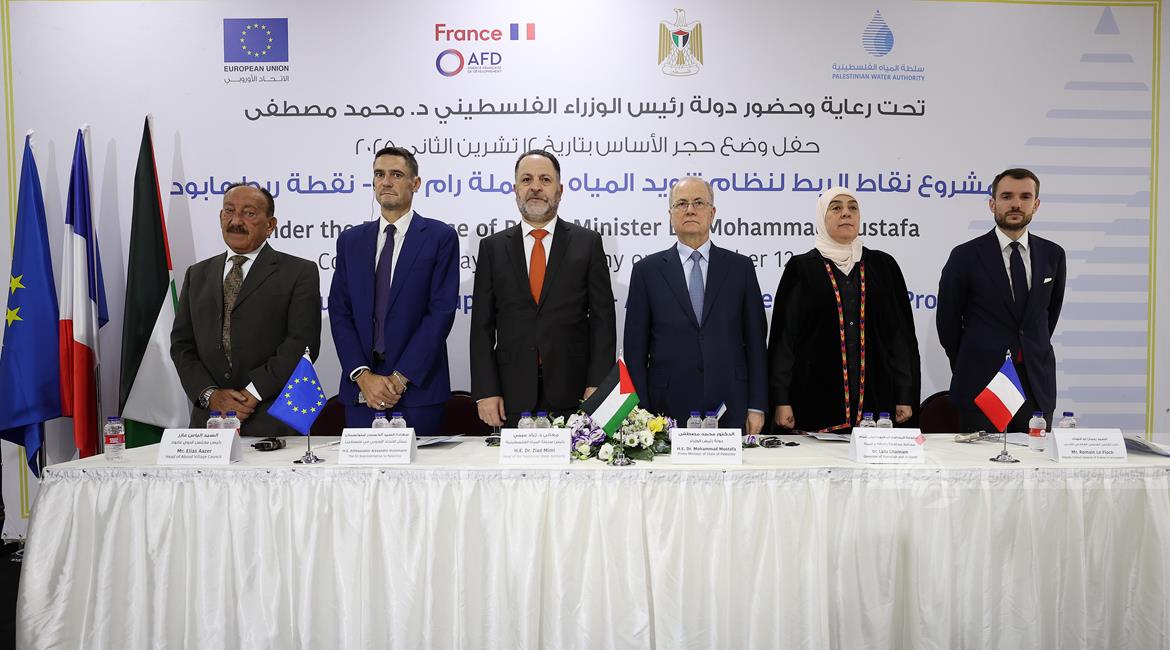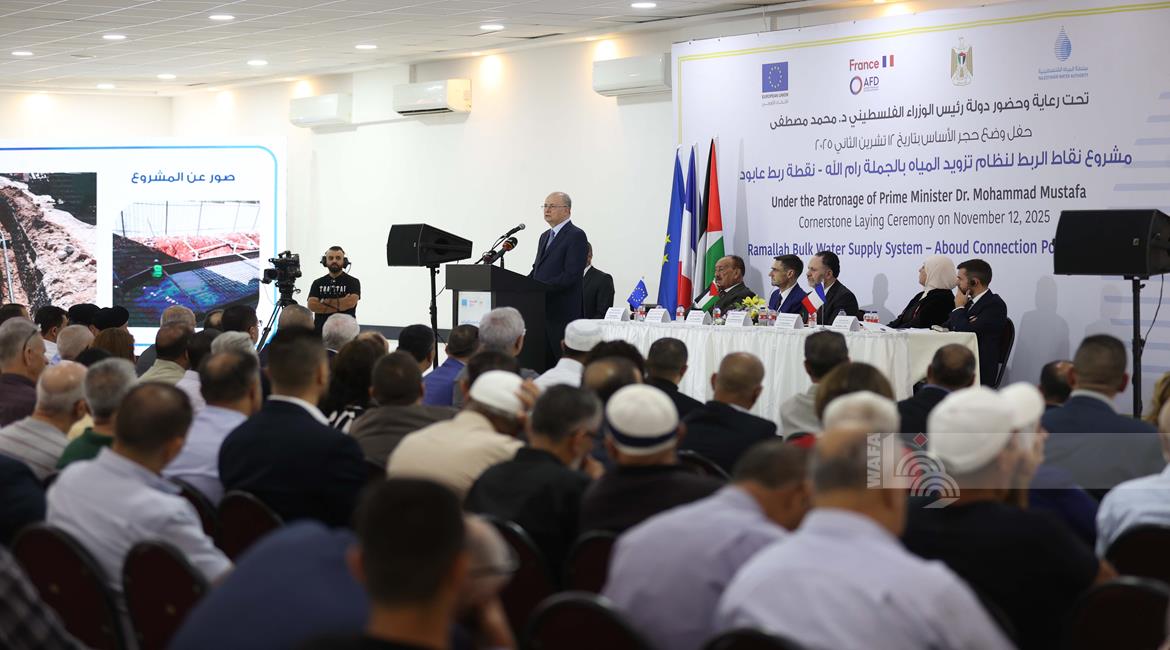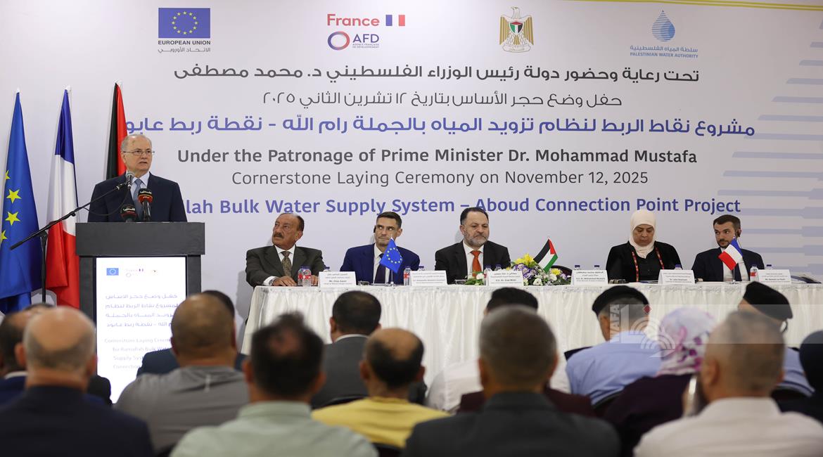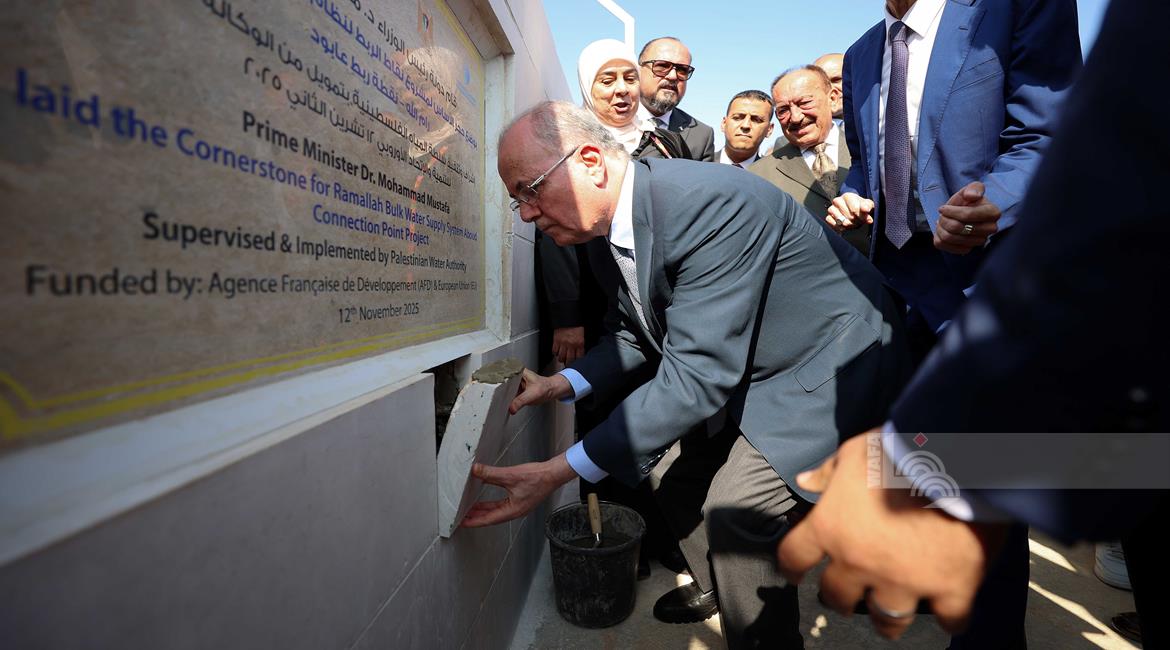 رام الله - رئيس الوزراء محمد مصطفى، يضع حجر الأساس لمشروع نقاط الربط لنظام تزويد المياه بالجملة في عابود