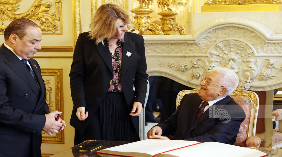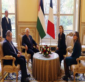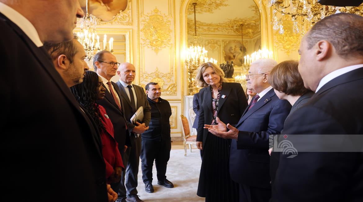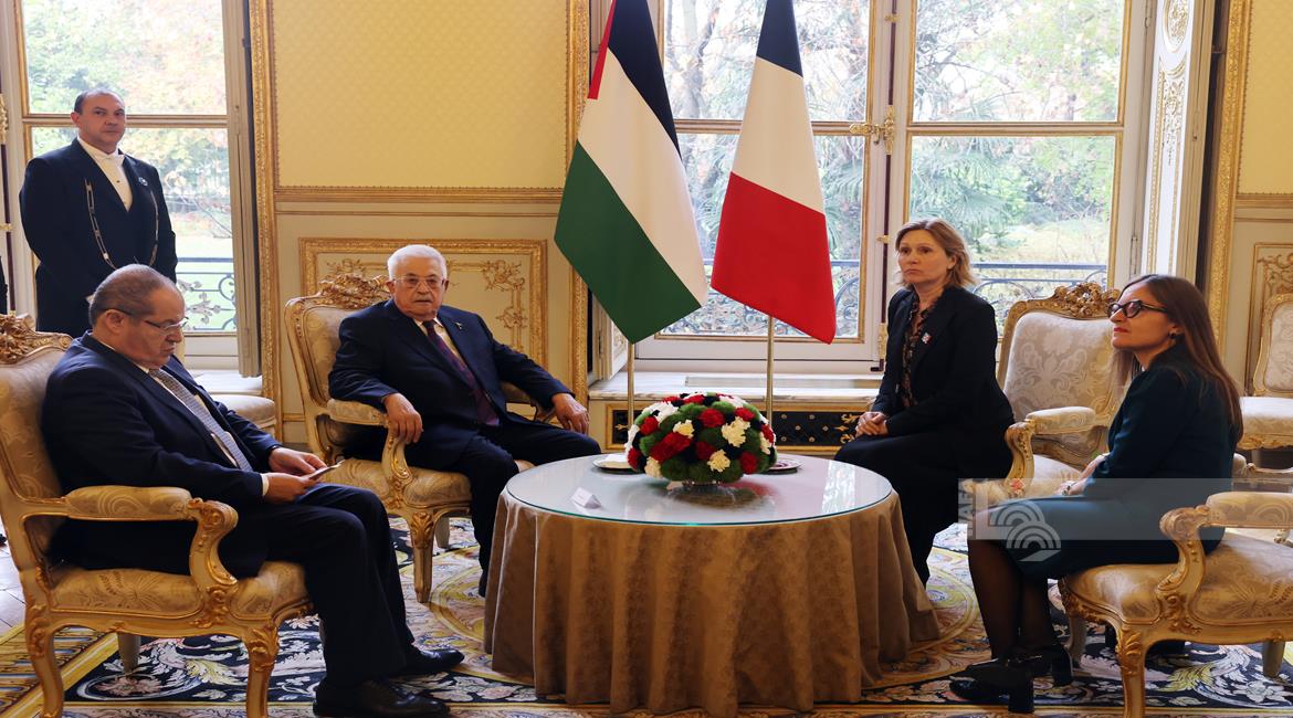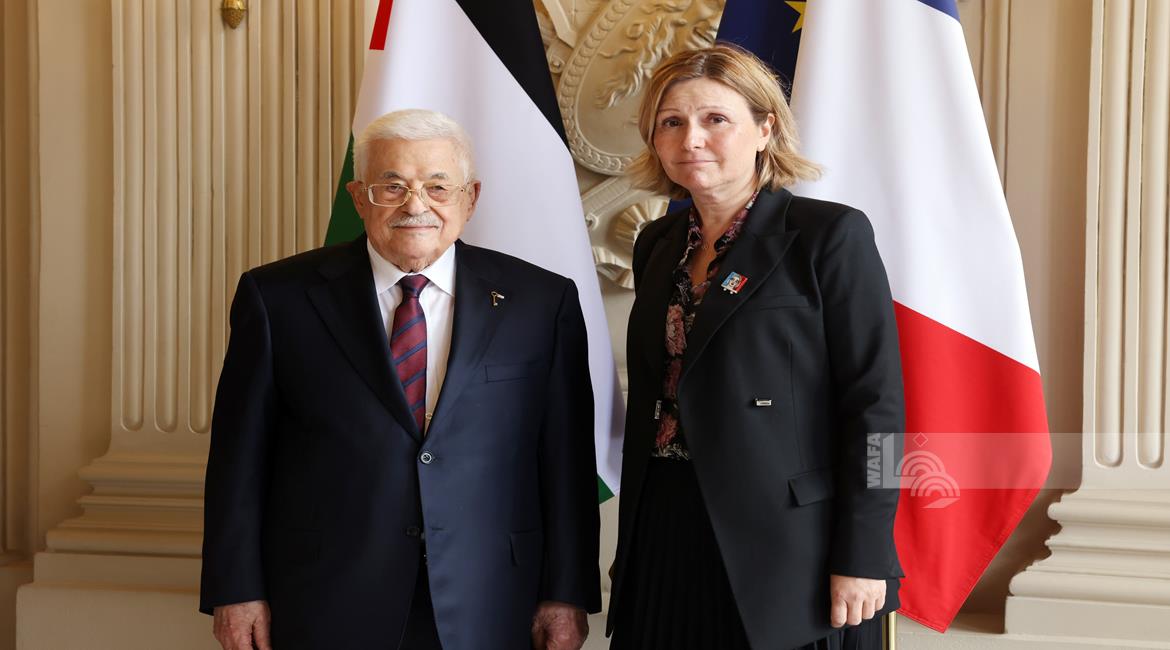 باريس - الرئيس محمود عباس، خلال لقائه رئيسة البرلمان الفرنسي يائيل براون بيفيه