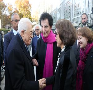 الرئيس محمود عباس، خلال لقائه رئيسة البرلمان الفرنسي يائيل براون بيفيه