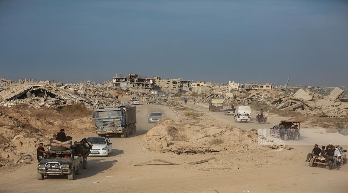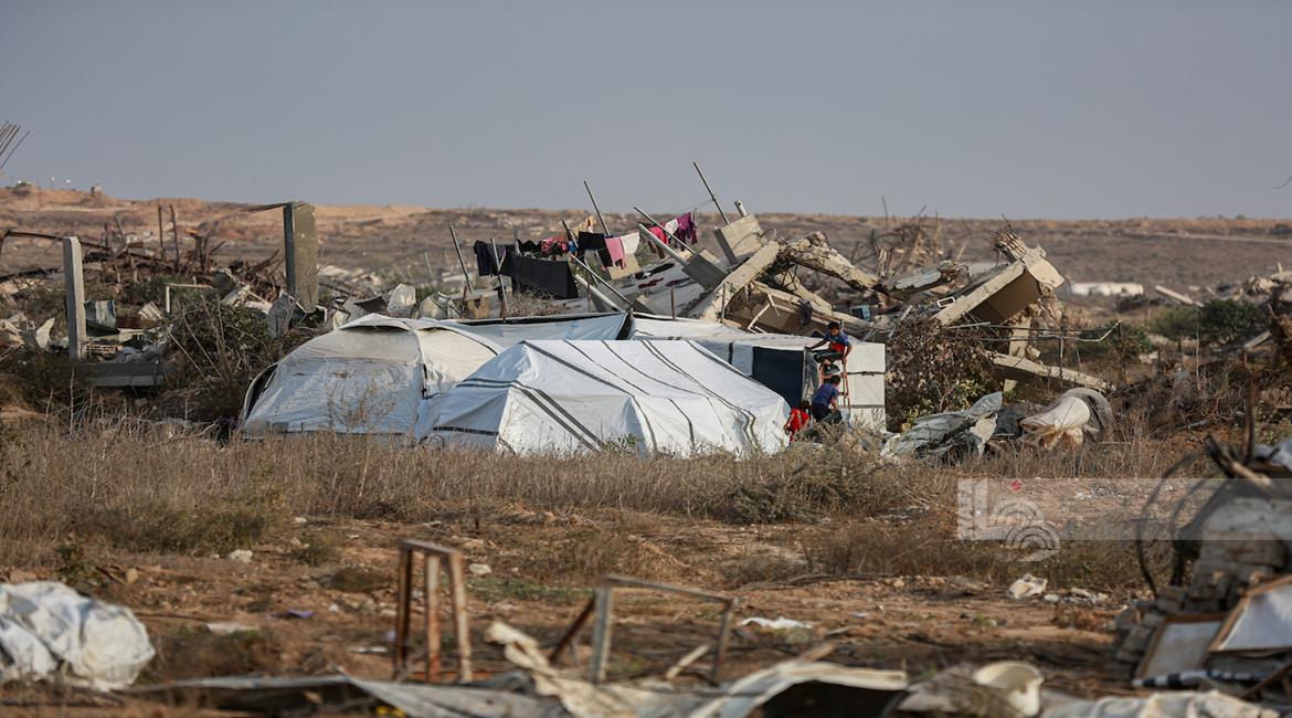 معاناة المواطنين في الخيام المتكدسة فوق أنقاض منازلهم المدمرة على جانبي شارع صلاح الدين وسط غزة