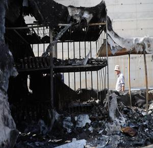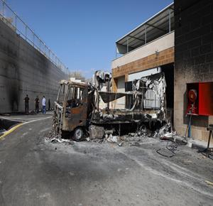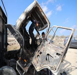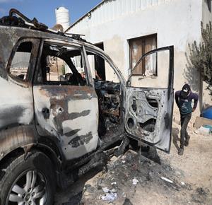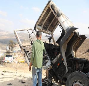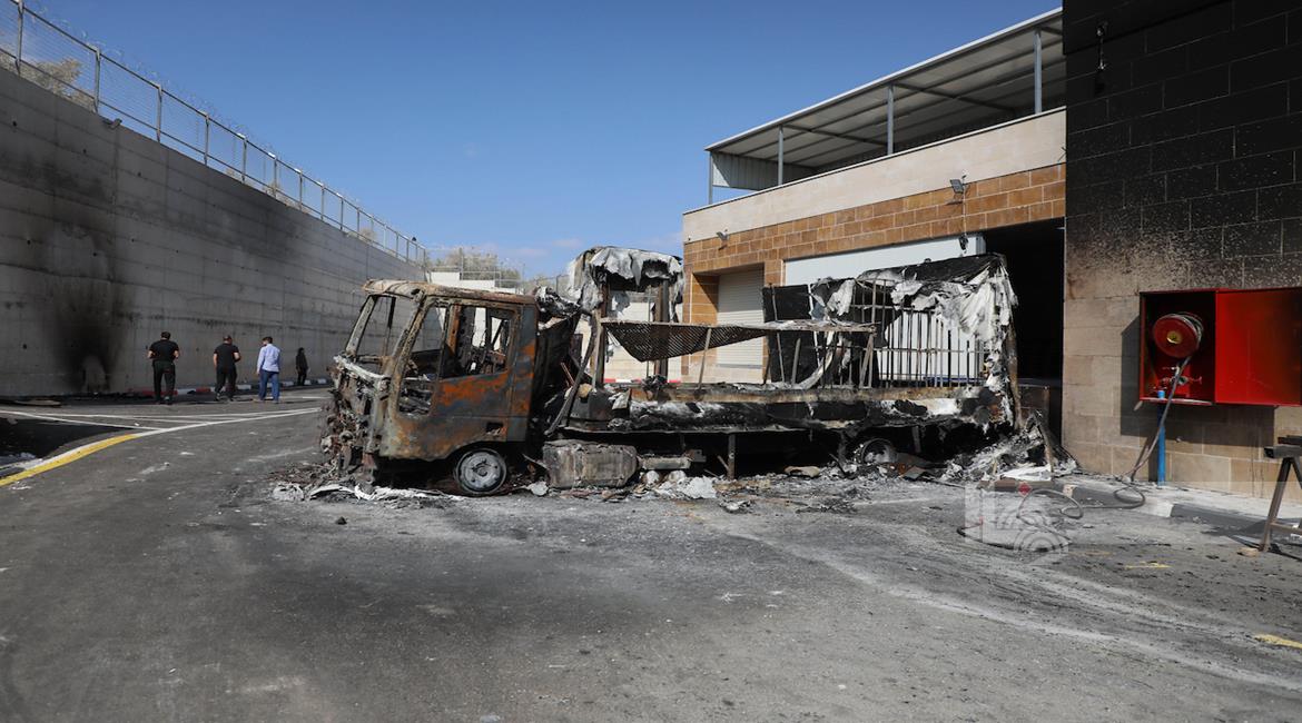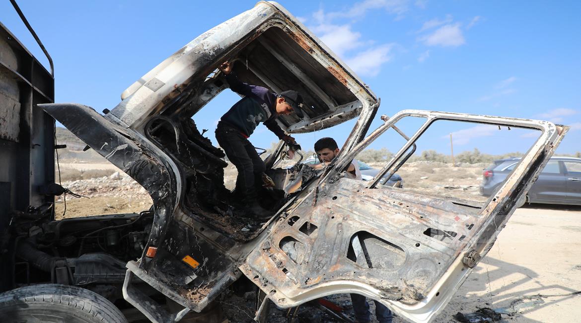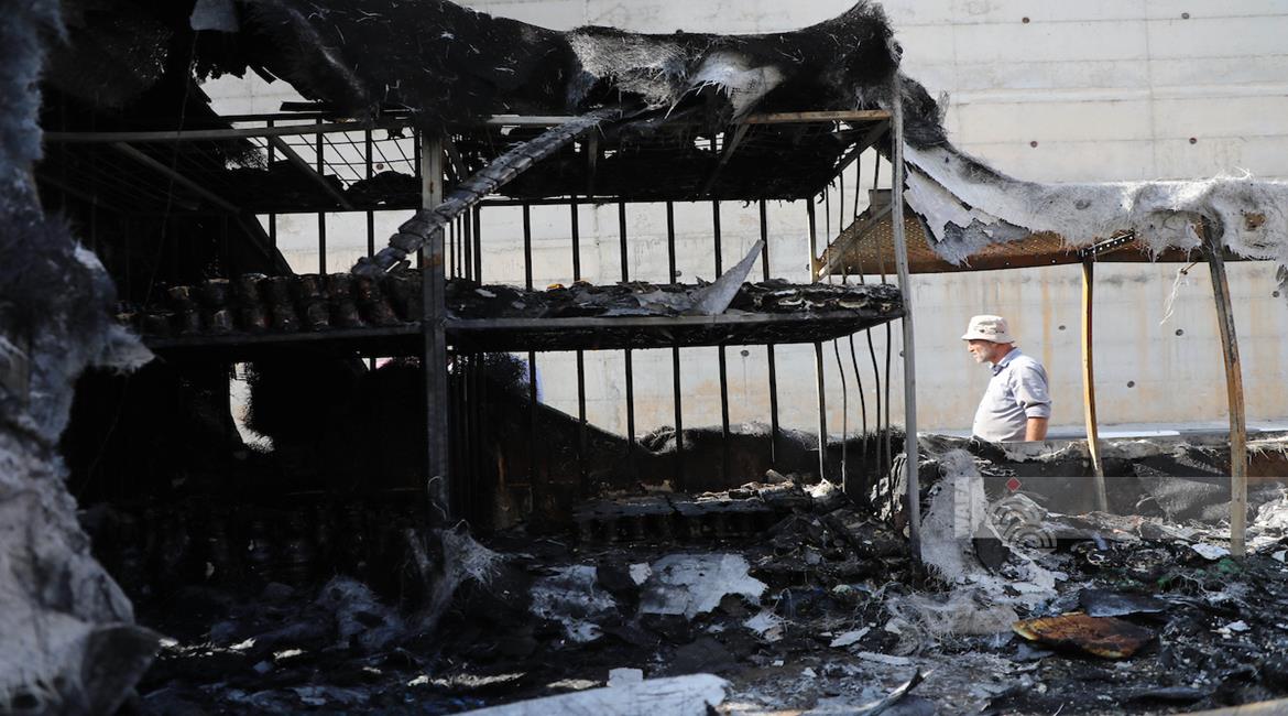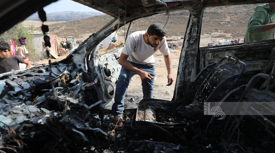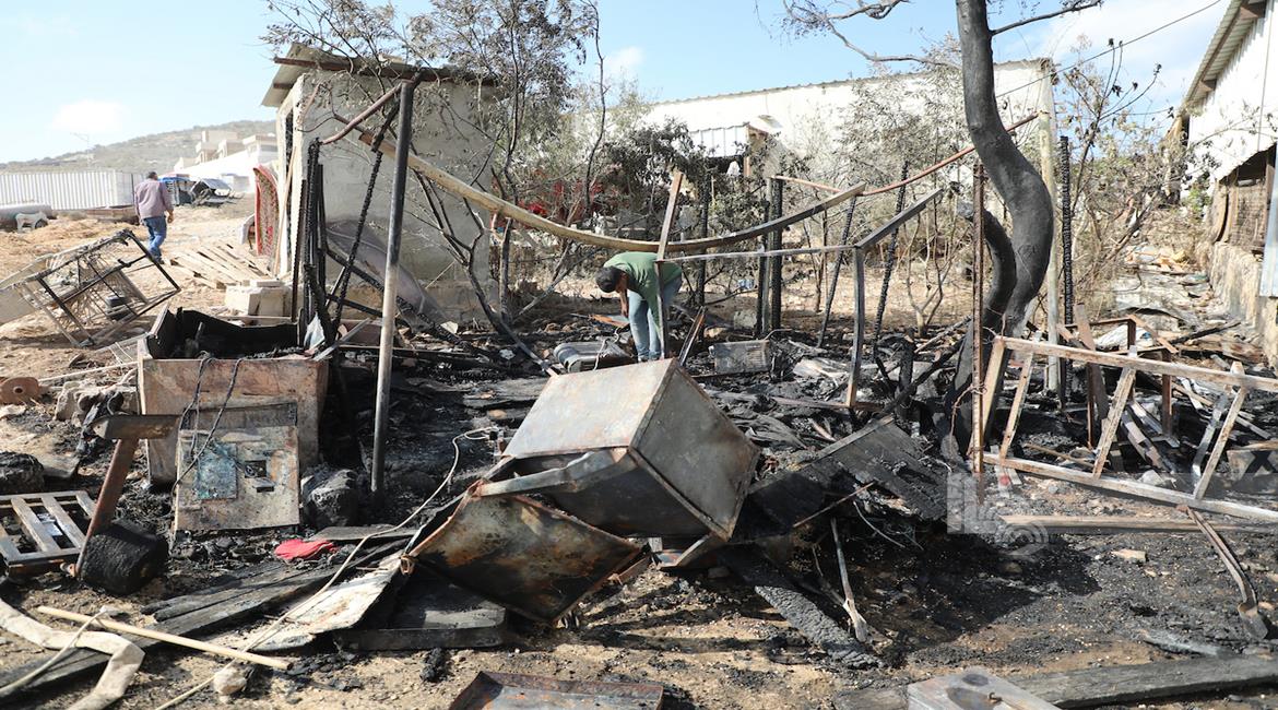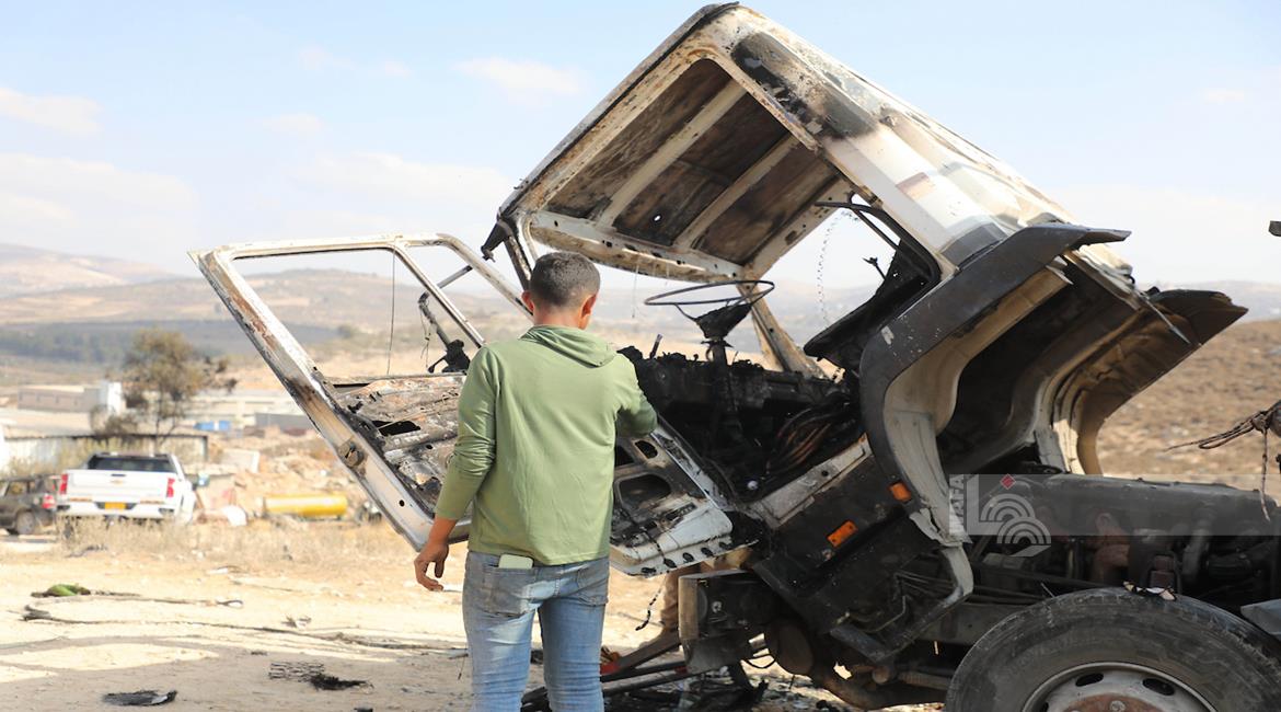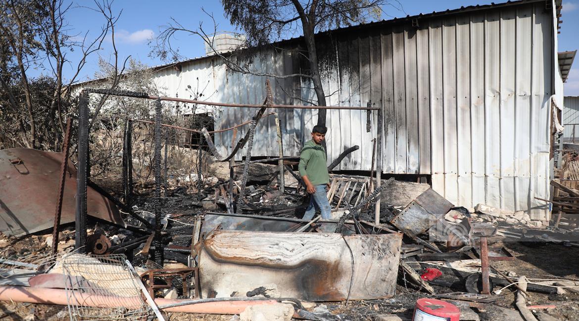 نابلس - مواطنون يتفقدون مركبات وخيامًا محترقة في مخيم بدوي لتربية المواشي ومنشأة ألبان، بعد هجوم نفّذه مستعمرون غرب مدينة نابلس